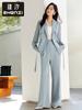 Zhen Xi novo feminino manga longa chiffon costura lapela moda viajante terno calças de perna larga terno SQ311