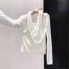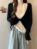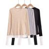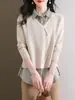 Blusas Francesas Falsas de Duas Peças para Mulheres 2024 Primavera Novo Estilo Estilo Mãe Cor Contrastante Laço Camisa de Base de Manga Comprida