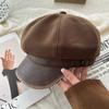 Boné octogonal de couro retrô feminino, boina de cabeça grande, boné de PU de alta qualidade, chapéu pequeno de pintor