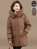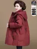 Casaco de inverno para mãe jovem 2024, novo casaco de algodão acolchoado para outono e inverno de meia-idade e idosos, com capuz, grosso, quente, acolchoado de algodão