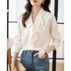 Elegante camiseta de manga comprida antienvelhecimento feminina 2024 outono novo ombro puro cintura formiga plissada top