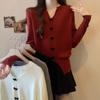 [Caxemira] Cardigan de suéter falso retrô vermelho de duas peças, feminino, outono e inverno, suéter de malha bordado com laço redutor de idade