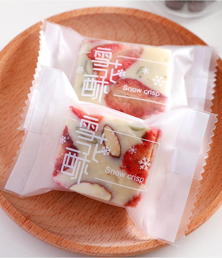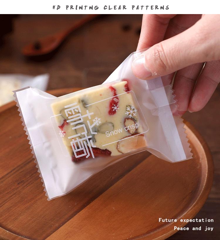 Saco de embalagem de batata frita floco de neve, saco selado à máquina, saco adesivo autovedante em leite, biscoito de tâmara, biscoito de vaca, embalagem de papelão para doces