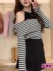 Camisa coreana chique chique com design de base Sense Niche Dopamine Red Stripe camiseta falsa de duas peças feminina outono
