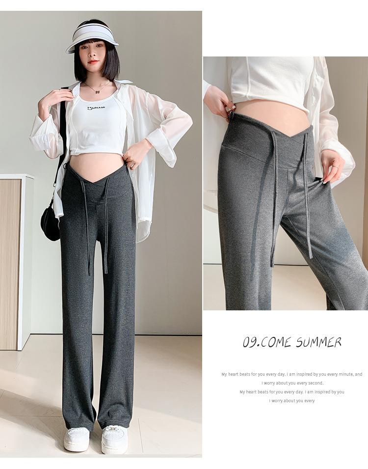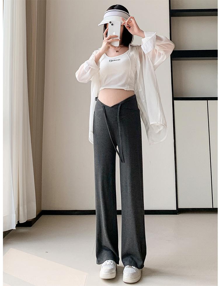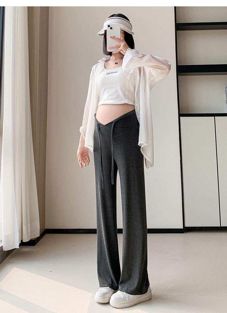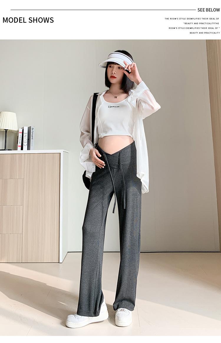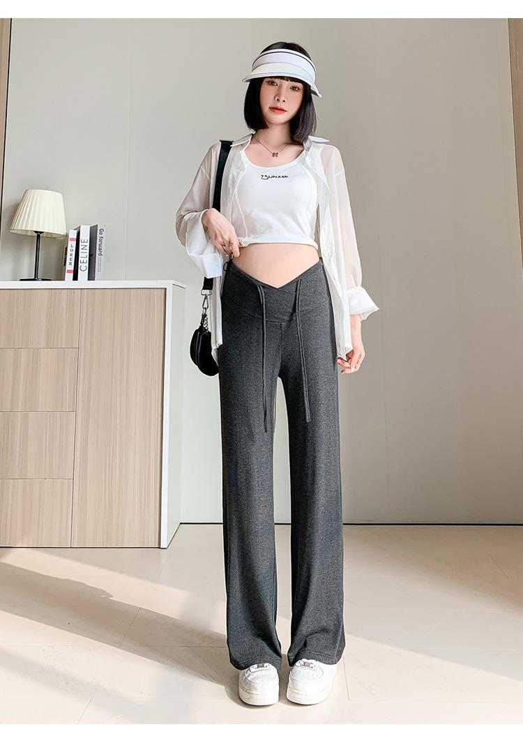 Calças para mulheres grávidas primavera e outono 2024, novas roupas para atividades ao ar livre, calças largas para mulheres grávidas, cintura baixa, calças retas casuais