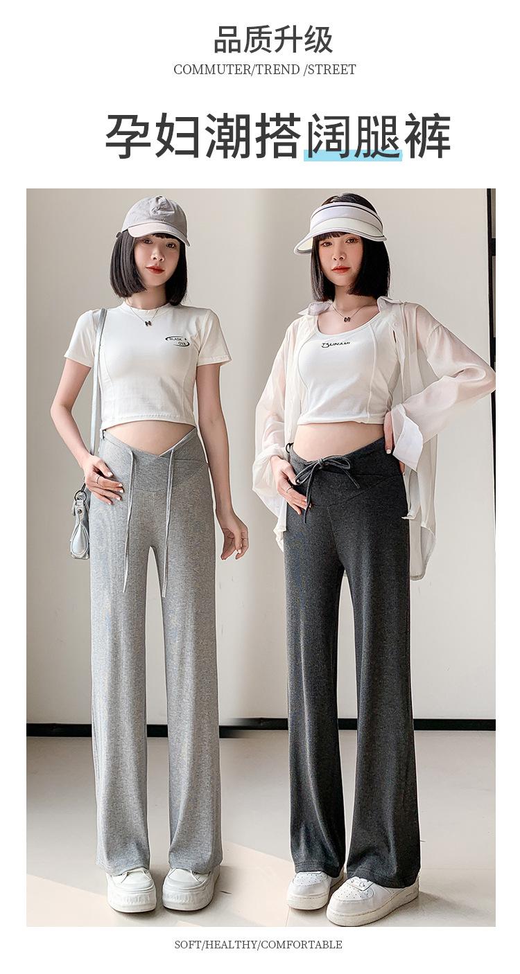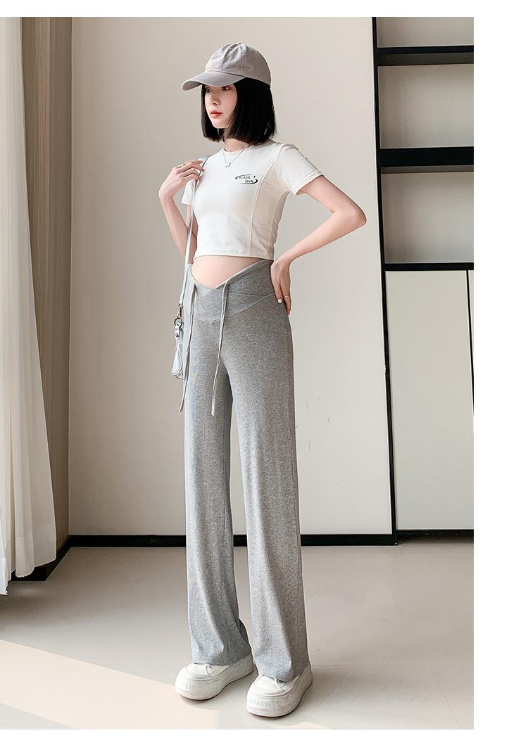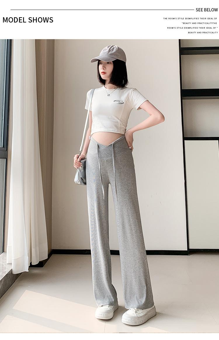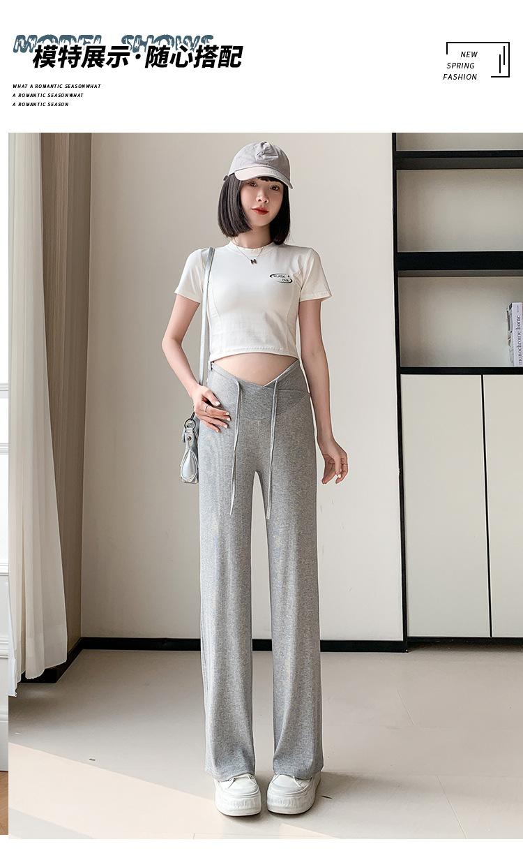 Calças para mulheres grávidas primavera e outono 2024, novas roupas para atividades ao ar livre, calças largas para mulheres grávidas, cintura baixa, calças retas casuais