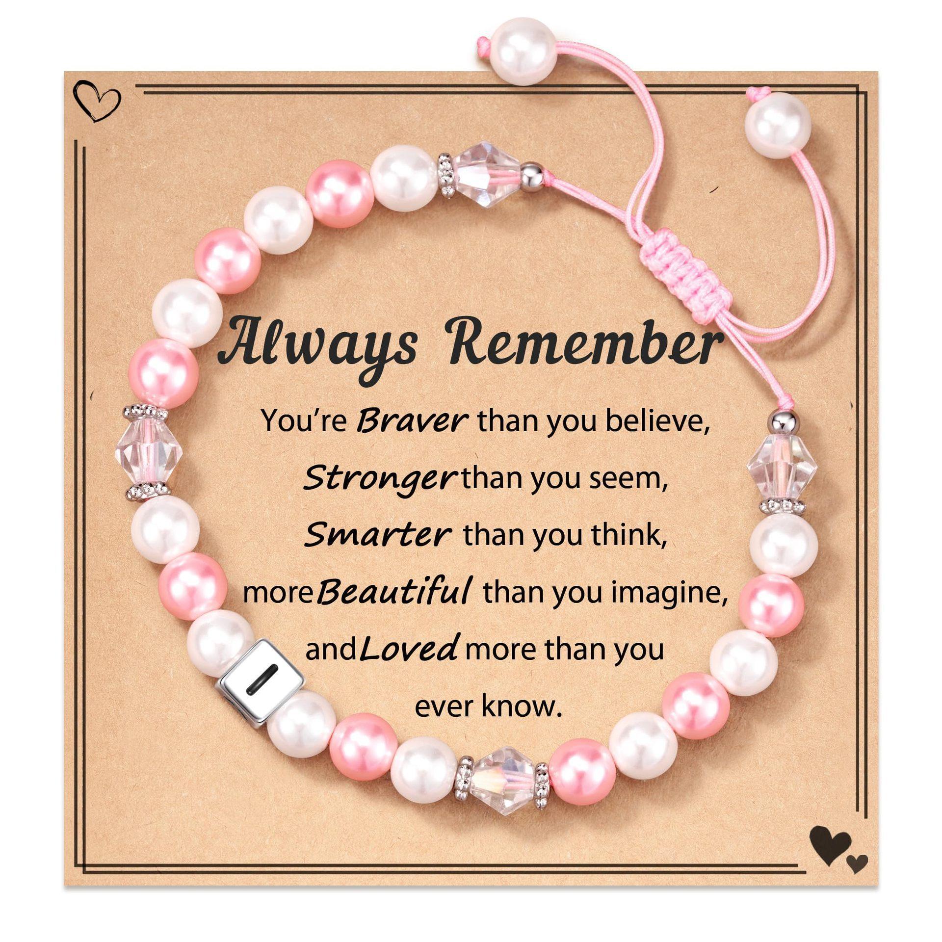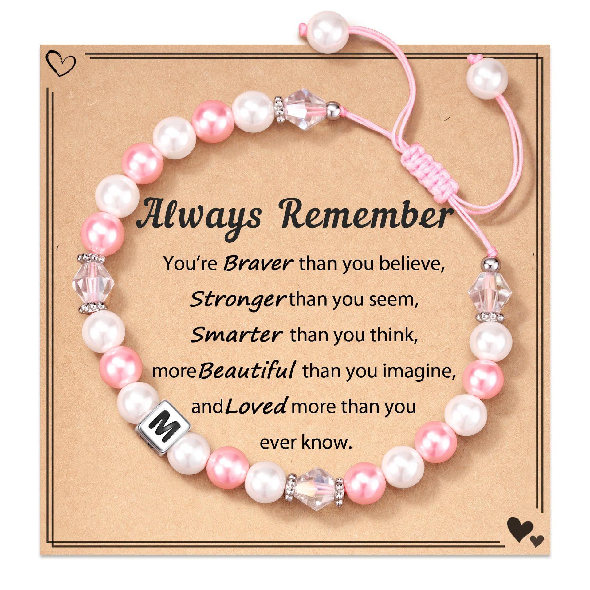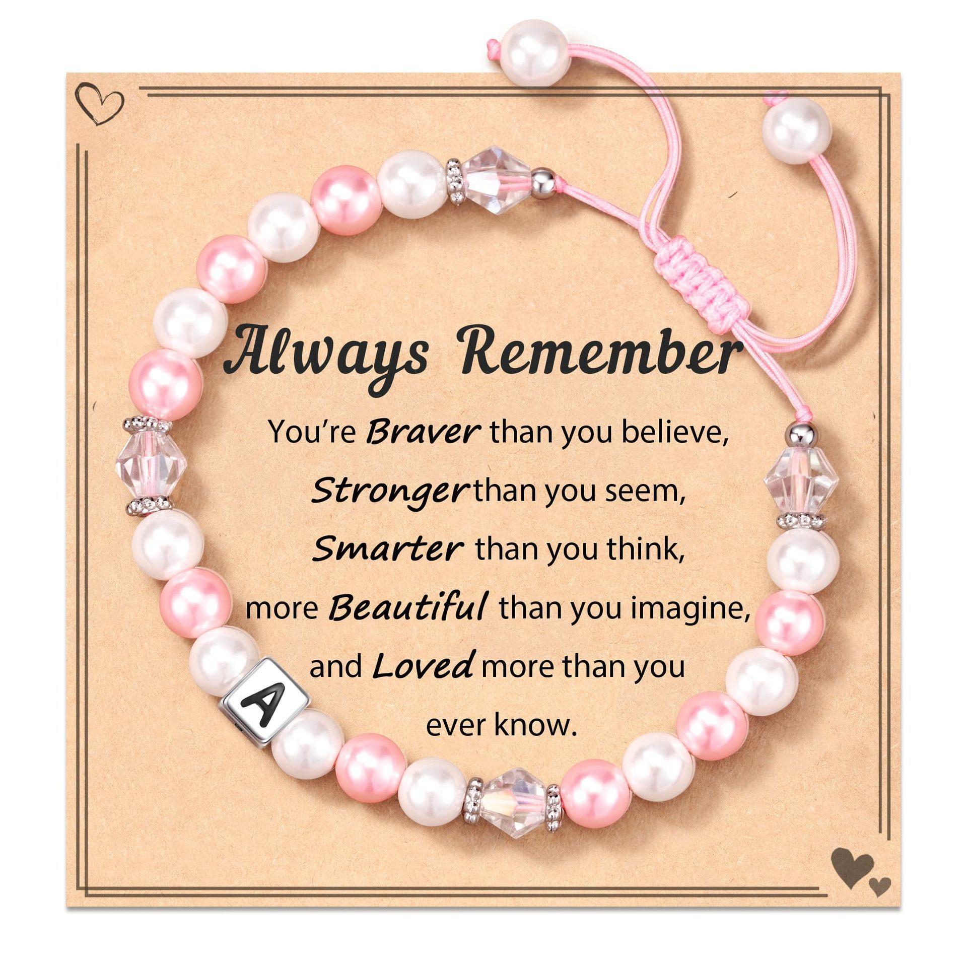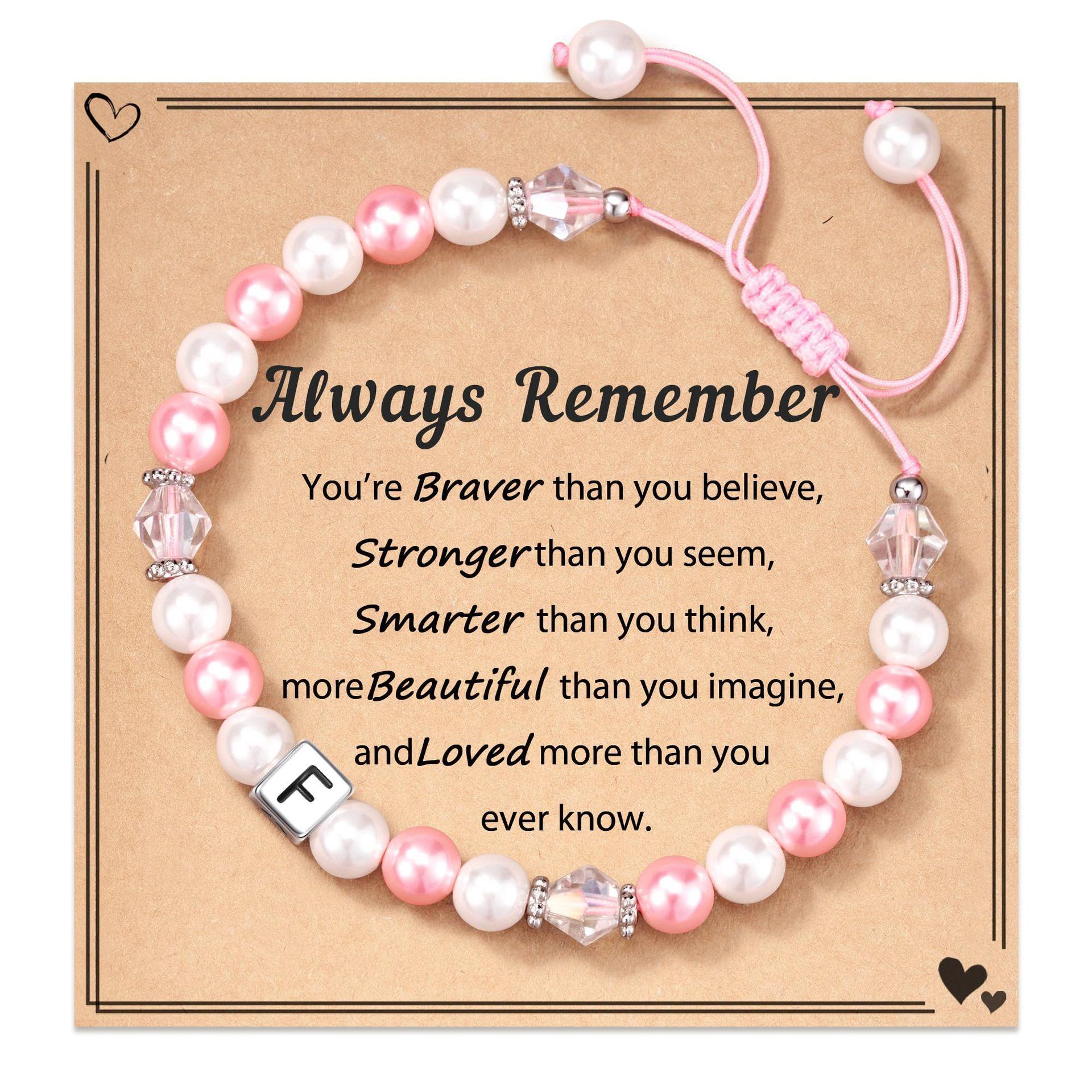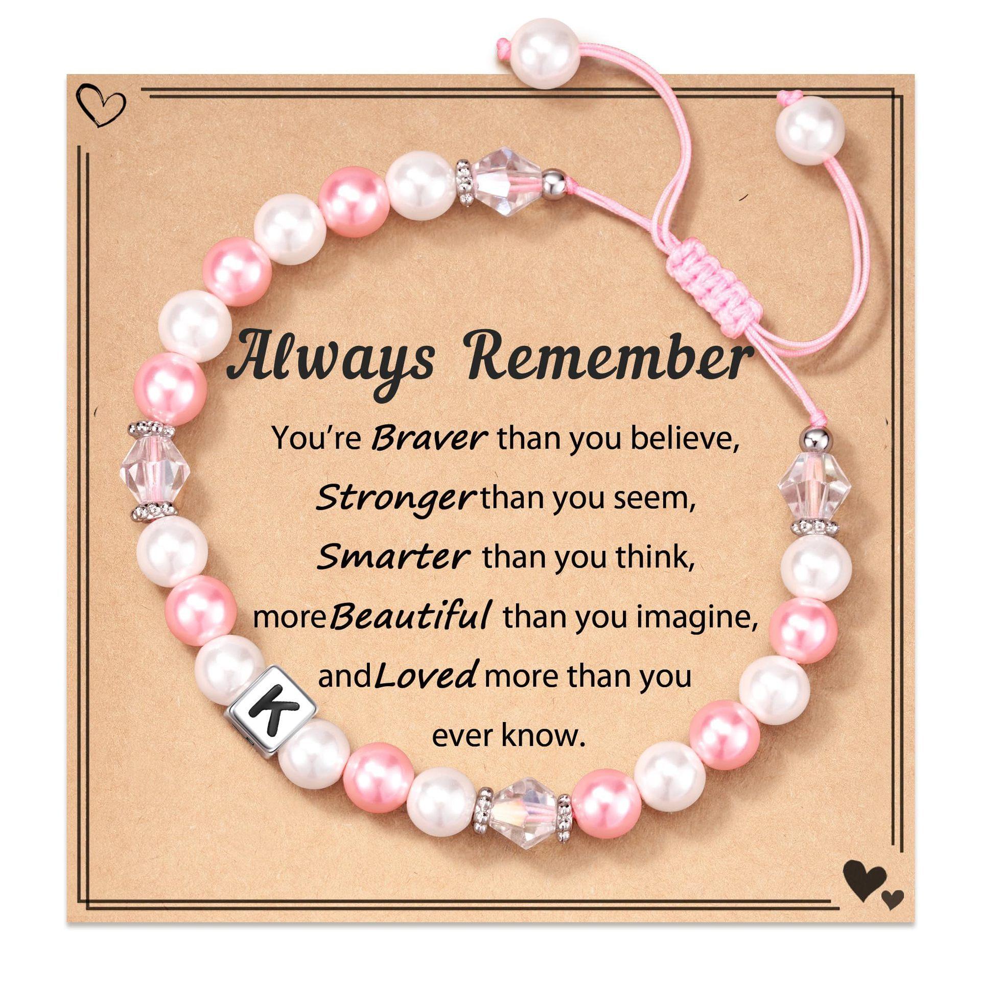 Pulseira de Pérolas Presente para Menina Contas de Diamante Contas de Prata Pulseira Trançada Pérola Rosa Pulseira de Letra Inglesa Pulseira