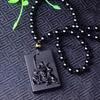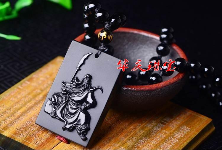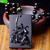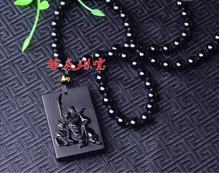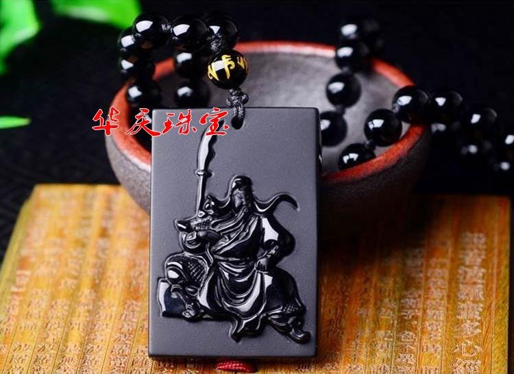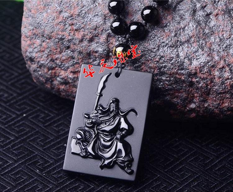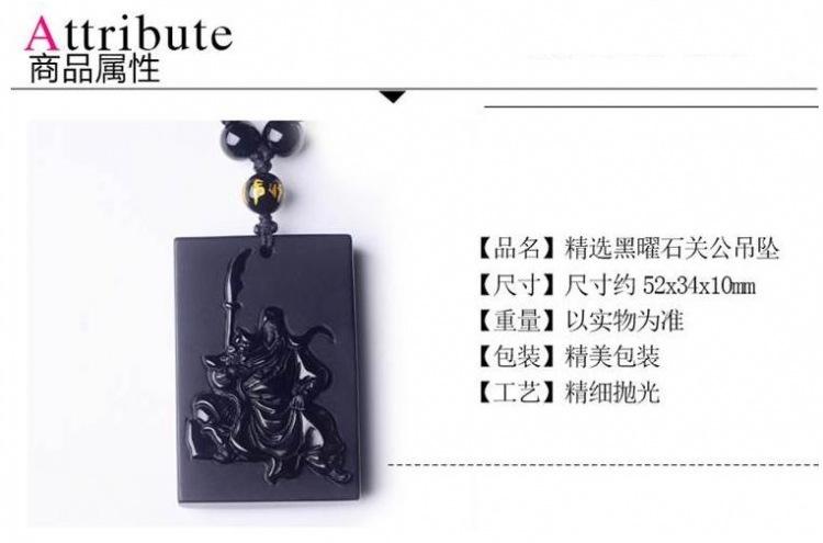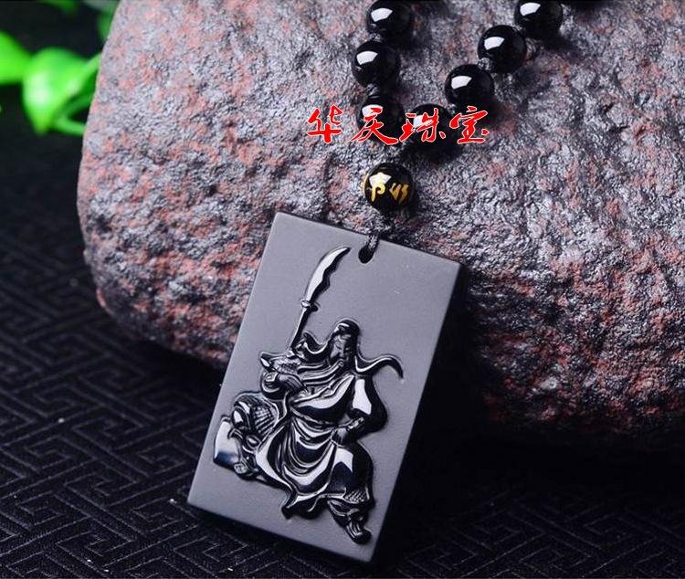 Atacado natural fosco obsidiana Guan Yu pingente masculino Guan Gong colar masculino e feminino longo suéter corrente jóias