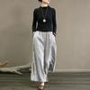 2024 Verão Novo Algodão e Linho Artístico Solto plus size Calças de Perna Larga para Mulheres