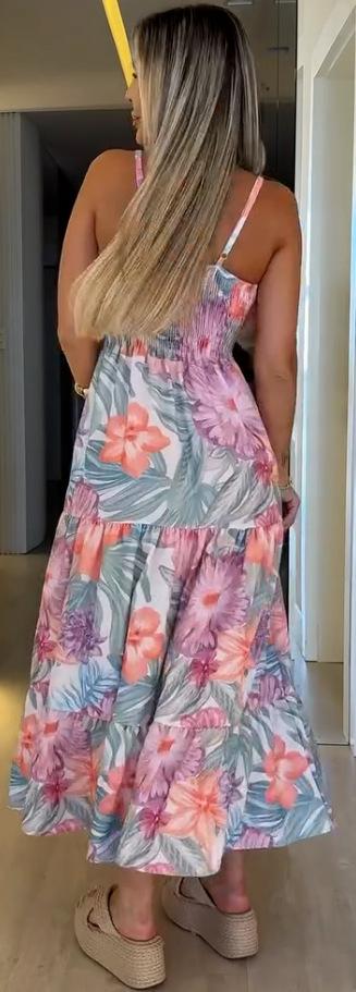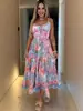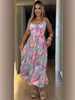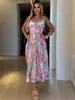 2025 primavera nova Amazon Europa e Estados Unidos transfronteiriça sexy sem mangas alça moda impressão longo temperamento vestido