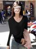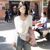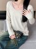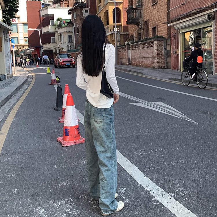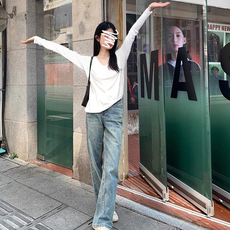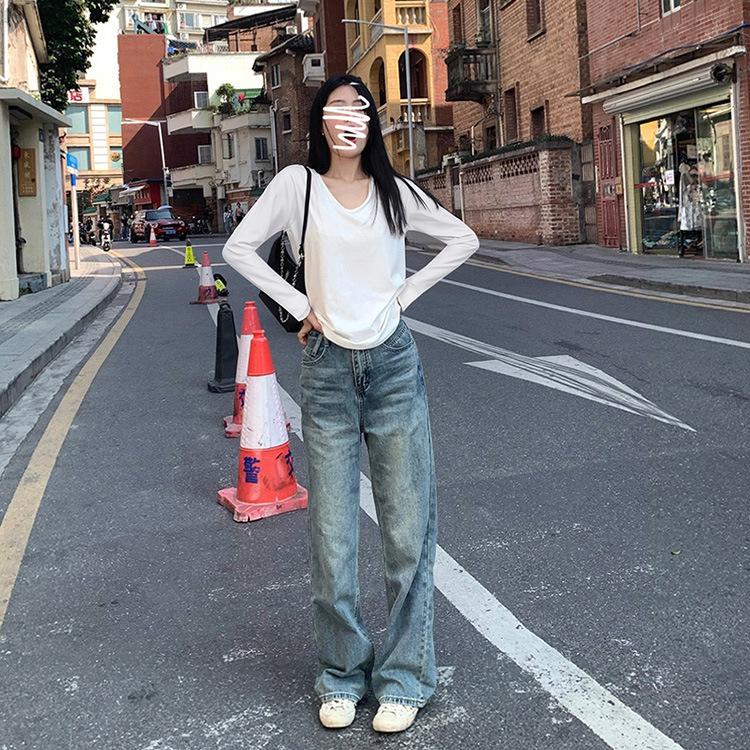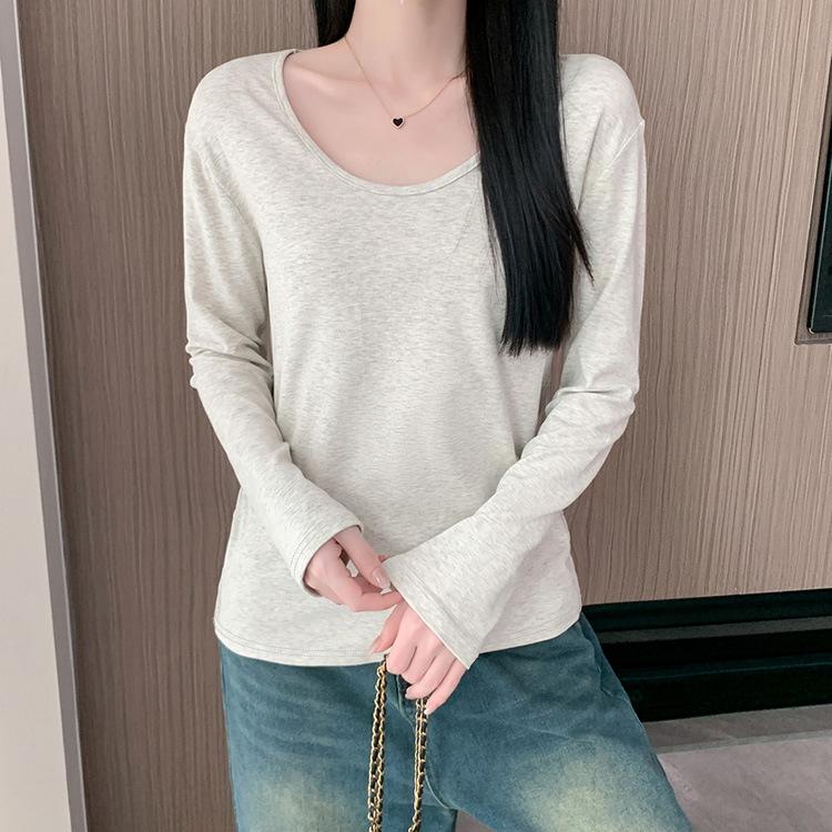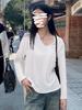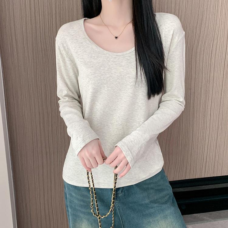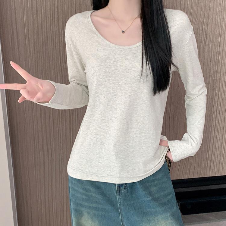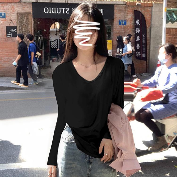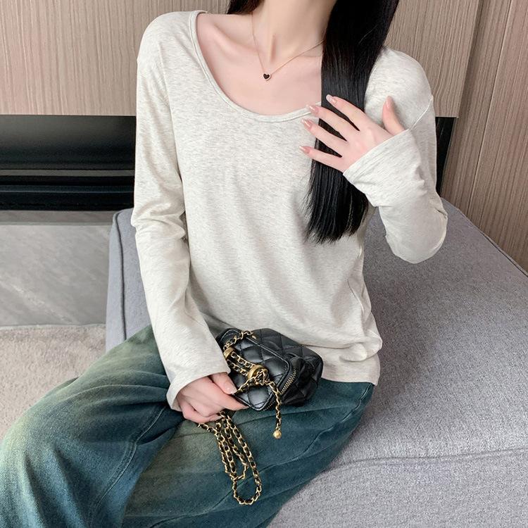 Camiseta feminina de manga comprida solta de algodão puro, estilo preguiçoso, nova, básica, cor sólida, outono de 2025