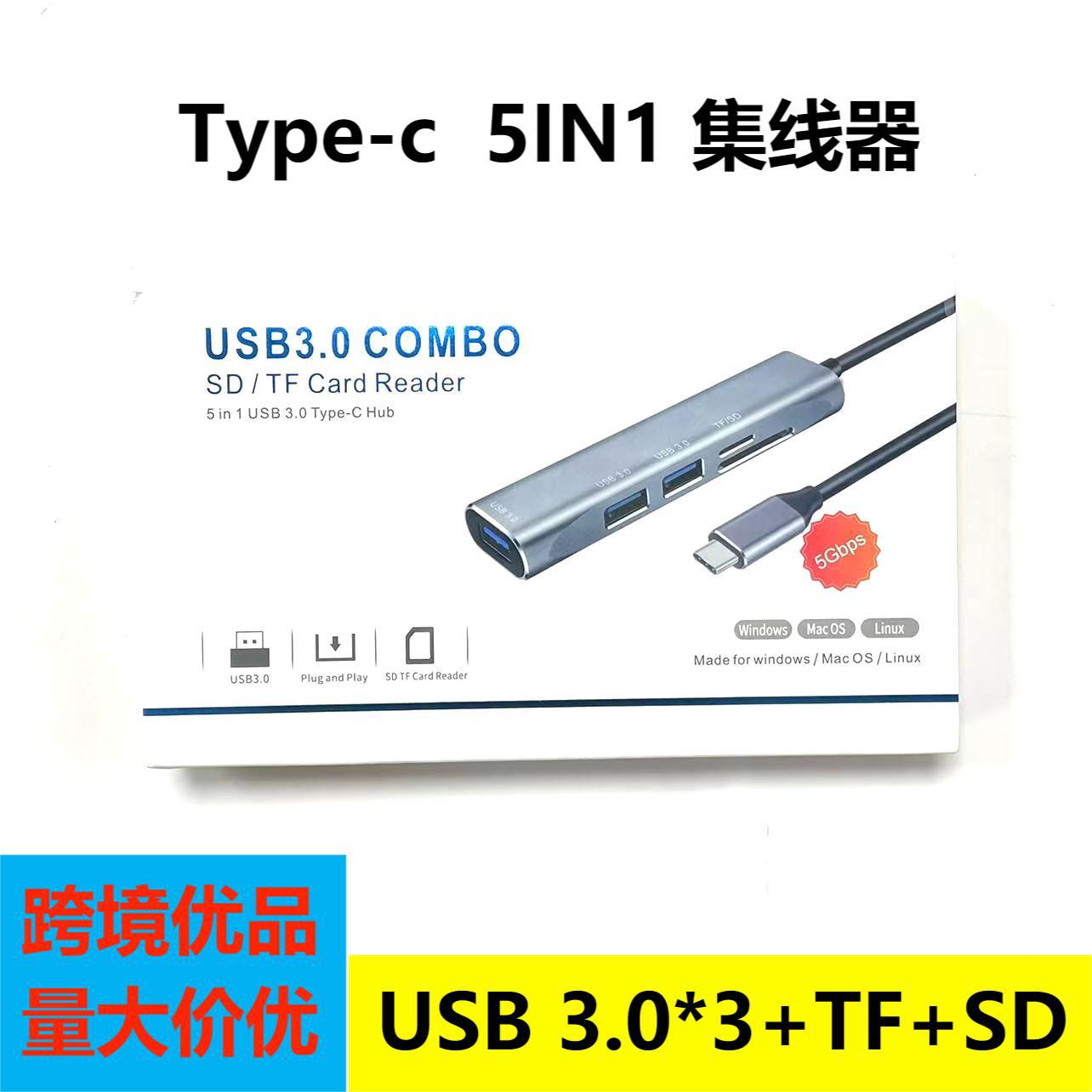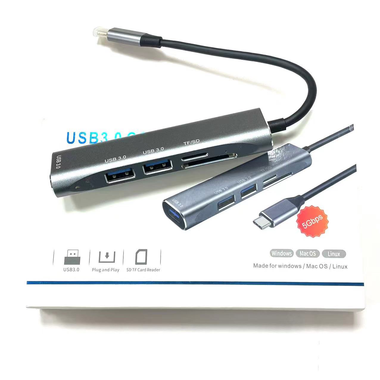 Estação de Acoplamento 5 em 1 Tipo-C Carcaça de Liga de Alumínio É Adequada para Laptops Rápidos, Tablets, Etc.