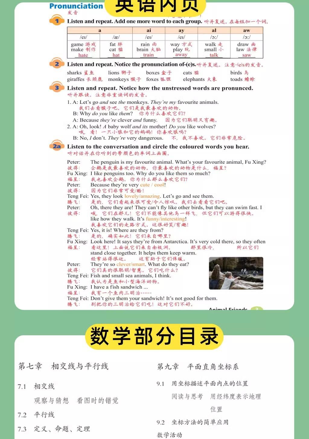 2025 nova edição] sétima série segundo volume novo livro didático edição de educação popular apoiando o primeiro volume matemática chinesa livro didático de inglês