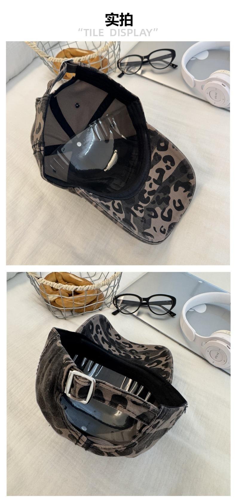 Boné de beisebol com estampa de leopardo Spice Girl retrô americano feminino primavera e verão novo chapéu de nicho mostrado pequeno boné de aba larga macio