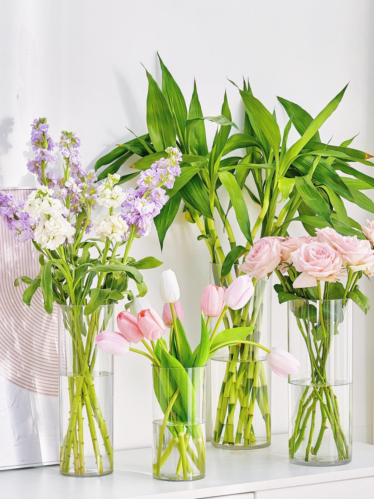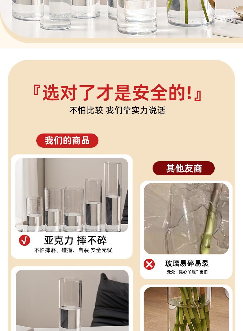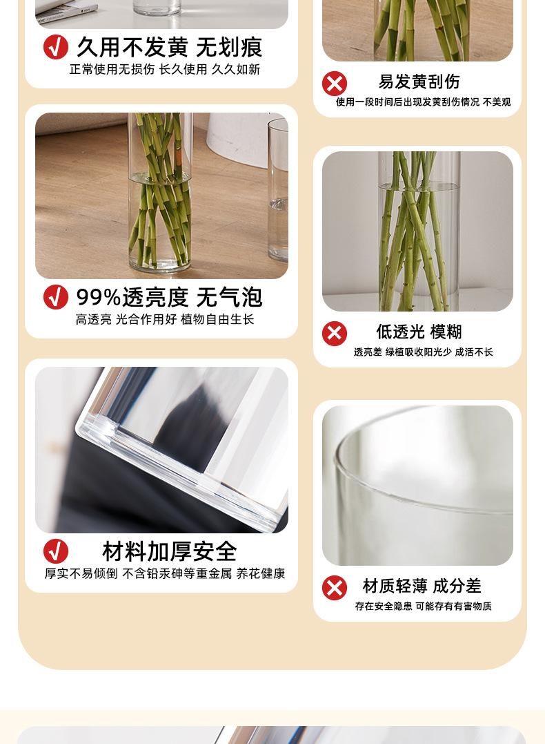 Vaso acrílico antiqueda hidropônico arranjo de flores rico bambu transparente decoração de flores sala de estar piso vidro quarto