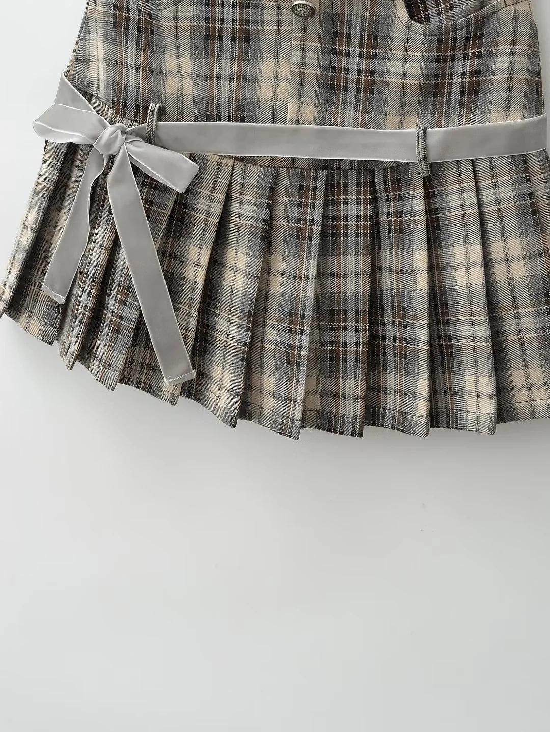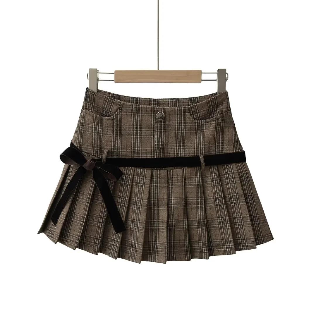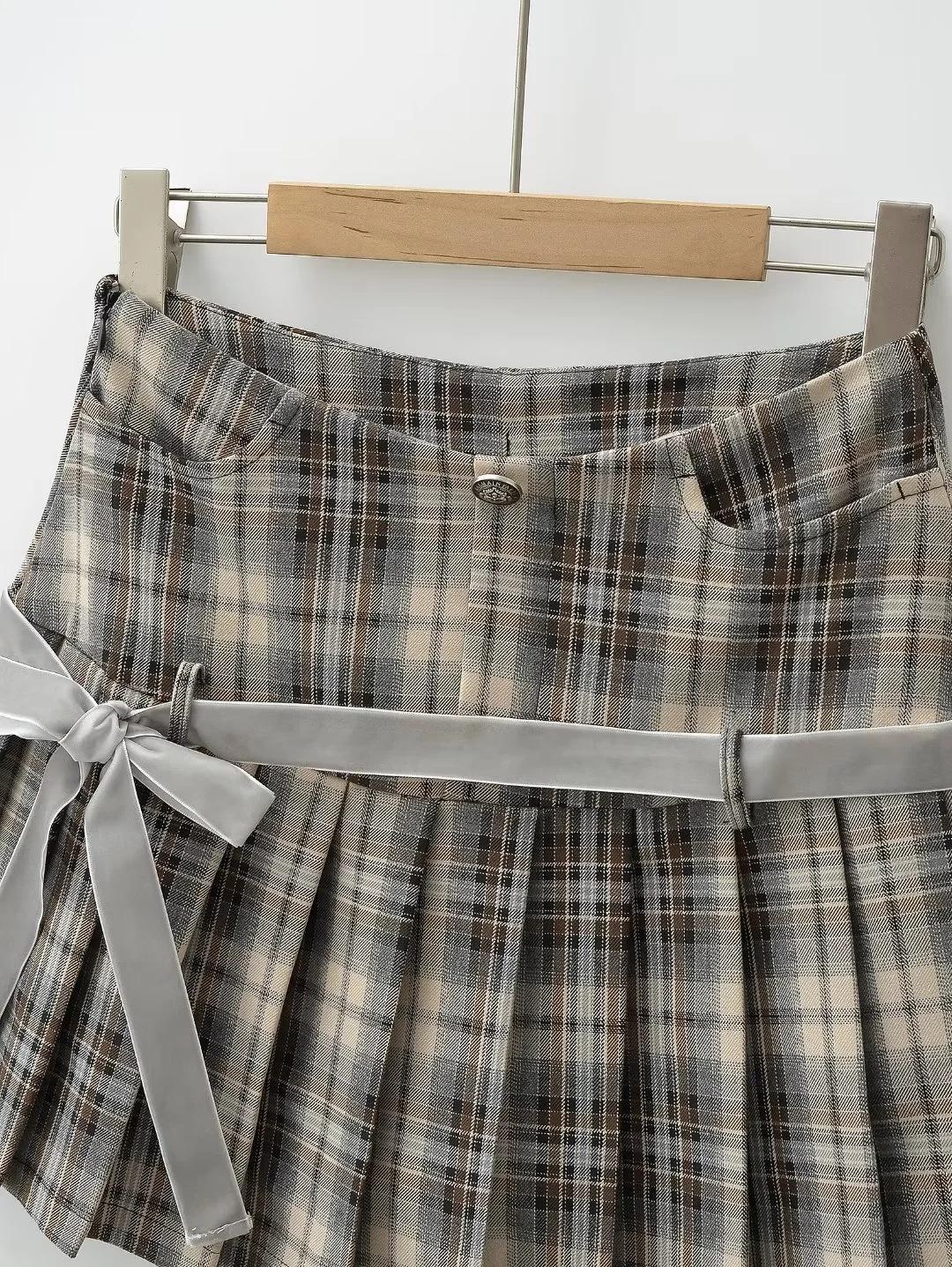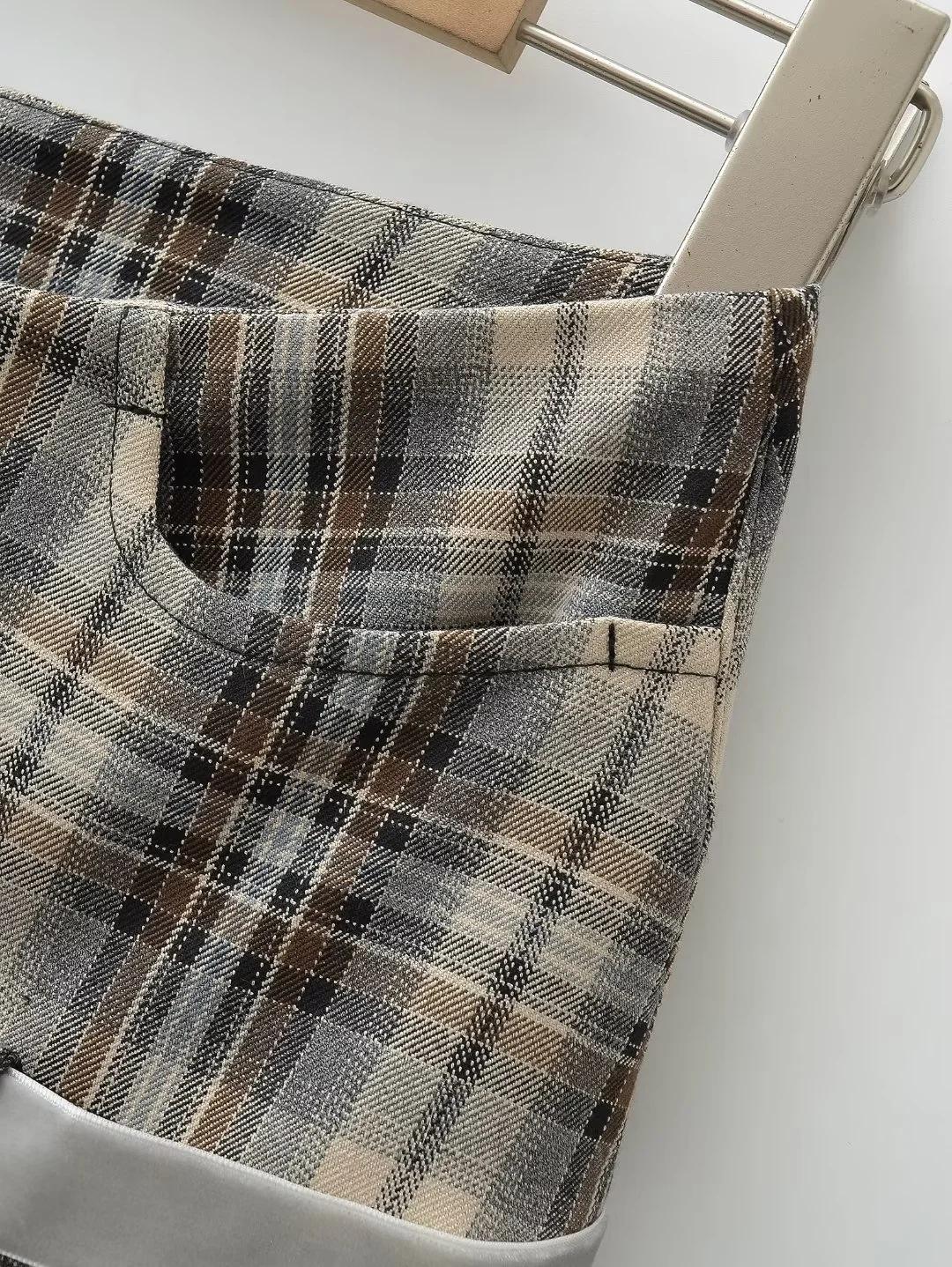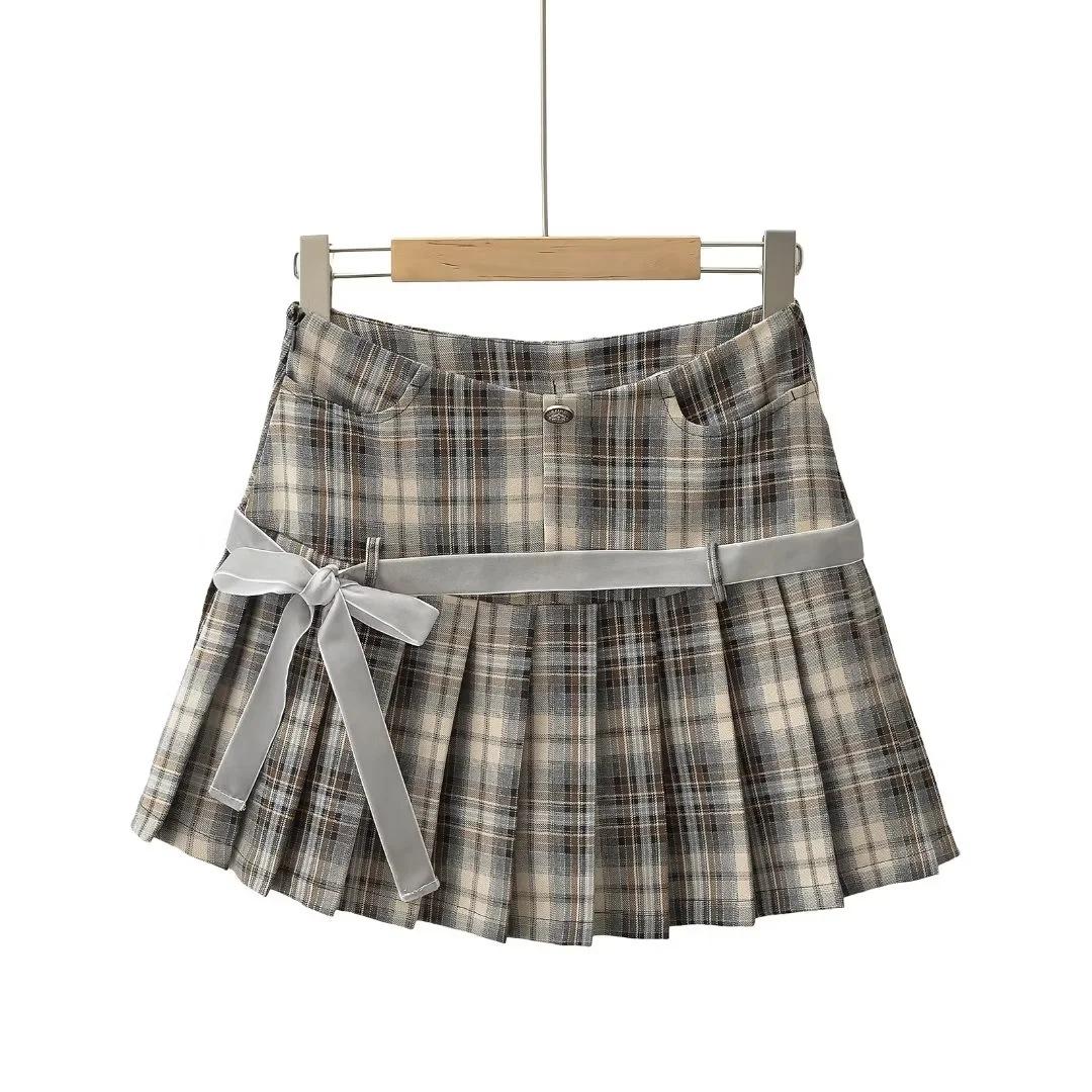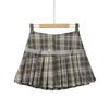Saia plissada xadrez estilo europeu e americano feminina, saia anti-exposição da moda, saia sexy para meninas quentes