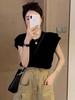 Camiseta de algodão estilo americano retrô, elegante, simples, pequena, com manga voadora, casual, feminina, verão, redutora de idade, chique, manga curta