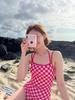 2023 Novo Maiô Feminino de Uma Peça Hot Spring Conservador Triângulo Fino Peito Pequeno e Orelha Borda Maiô