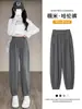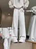 Calças esportivas de perna reta estilo americano femininas primavera e outono 2024 novas calças largas casuais com cordão e emagrecimento