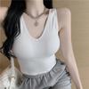 Camisola de algodão para mulheres, roupa interior de verão, roupa exterior, estampa de letras, slim fit, sem mangas, camisa básica, gola redonda, top