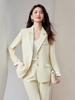2025 Primavera e Outono Novo High-end Sense Goddess Fan Moda Profissional Terno terno Três botões Amarelo Claro Terno Jaqueta para Mulheres