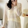 Longmei Tricô Fresco Coreano Lc Recortado para Mulheres Início do Outono 2025 Inverno Novo Top de Manga Comprida com Gola Redonda