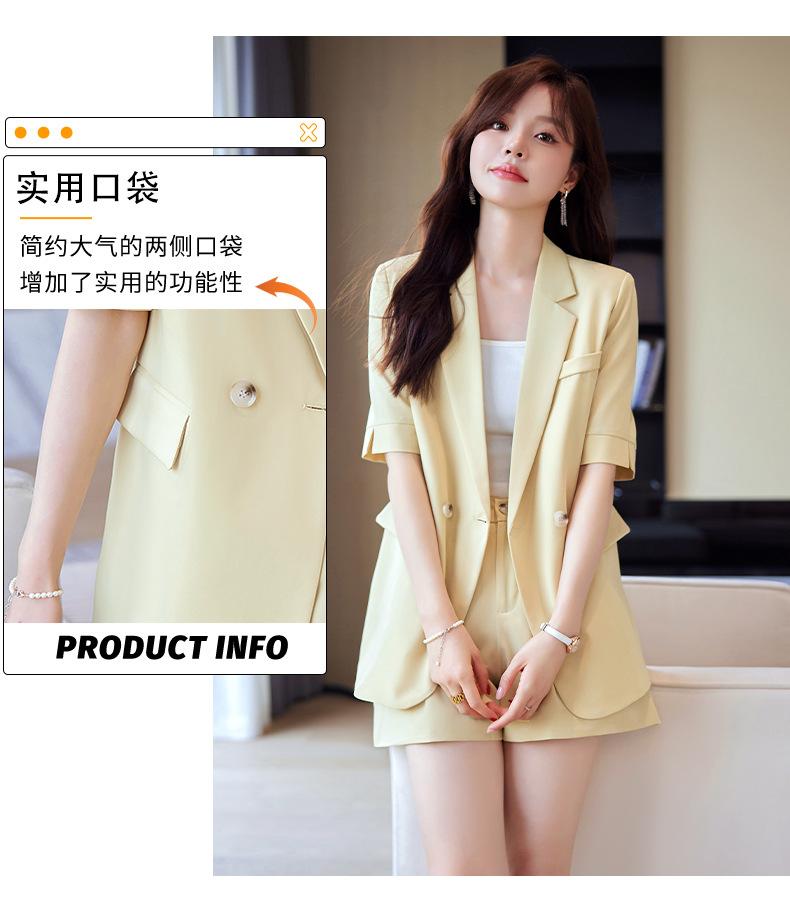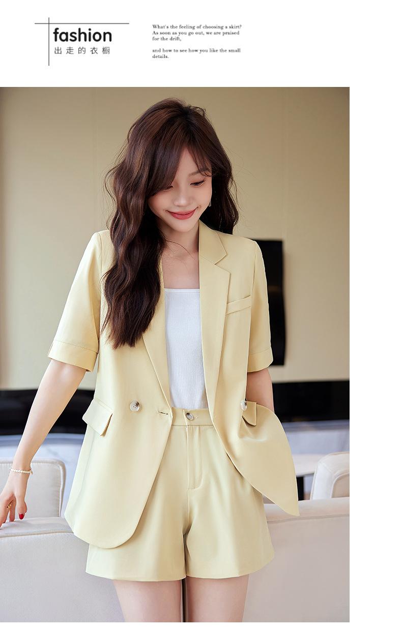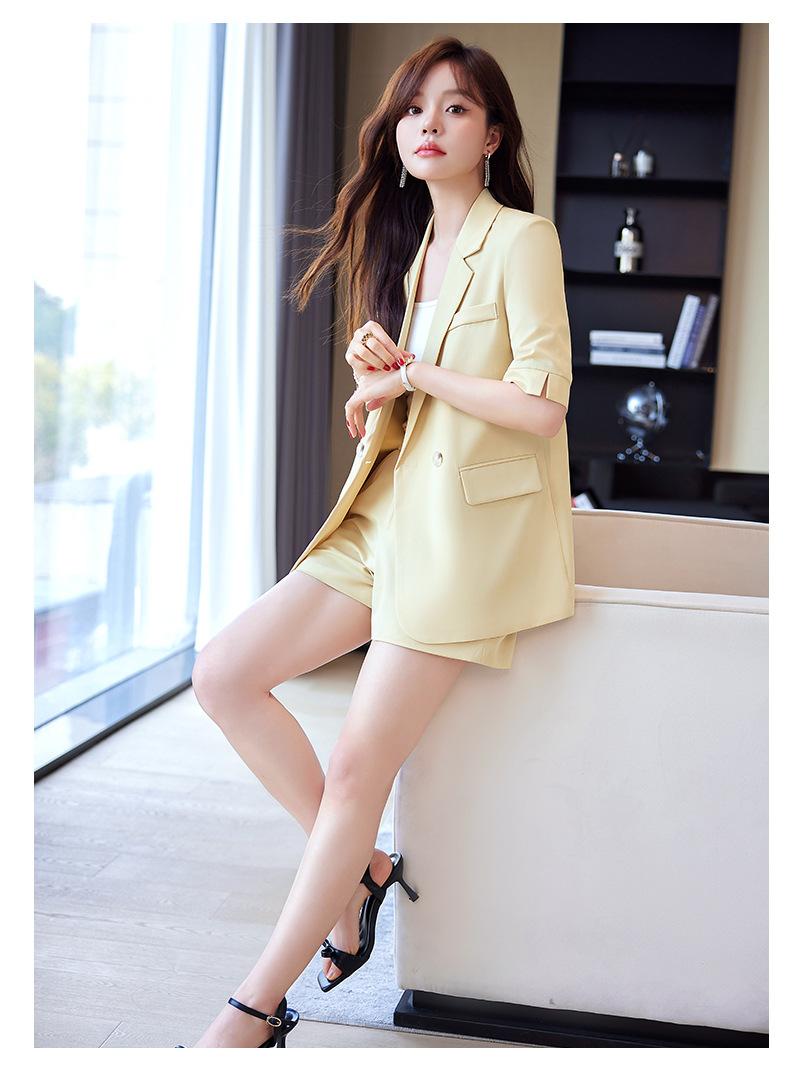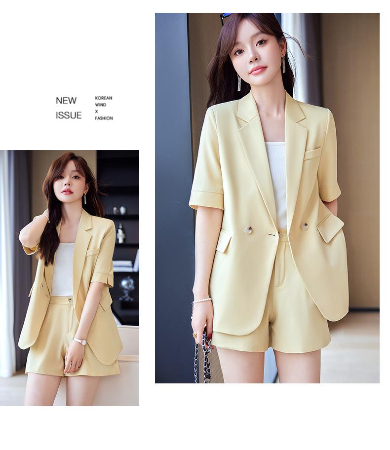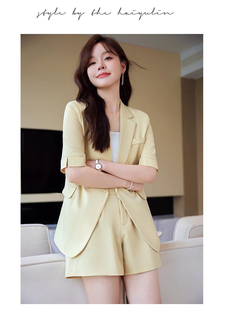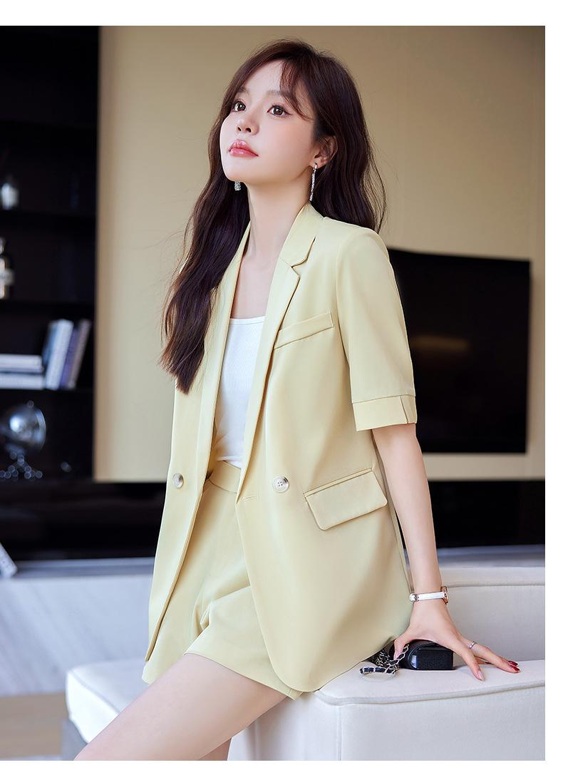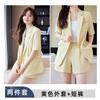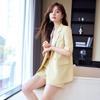 2024 Verão novo amarelo manga curta pequeno terno colarinho jaqueta shorts feminino profissional casual duas peças terno temperamento