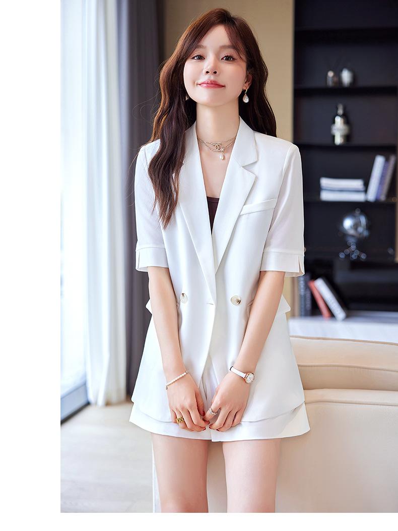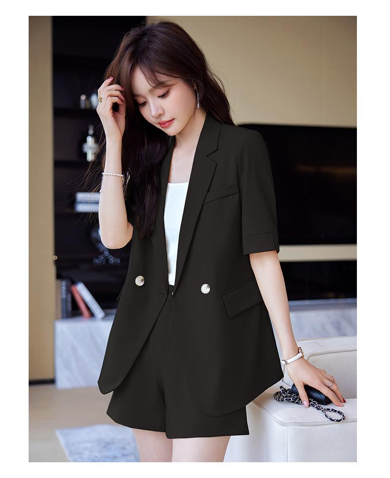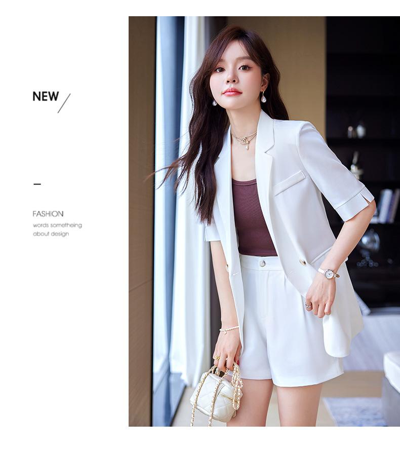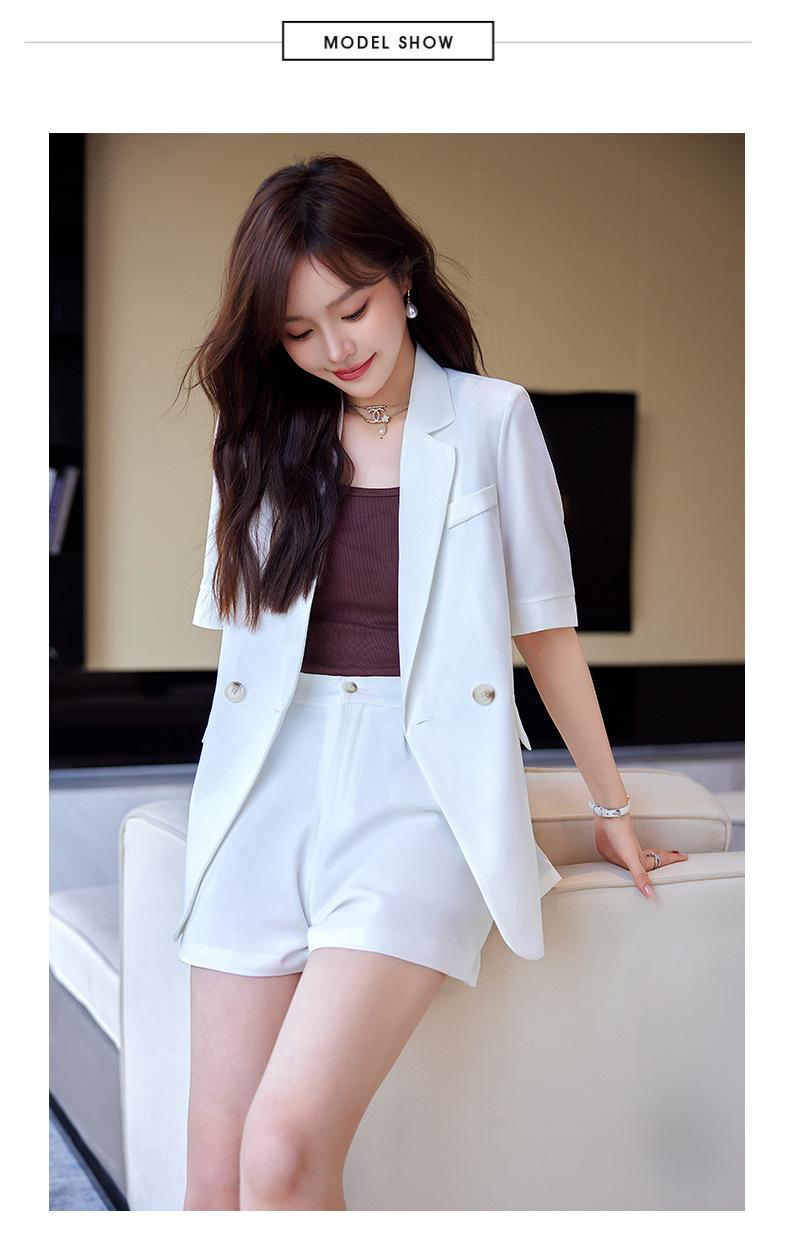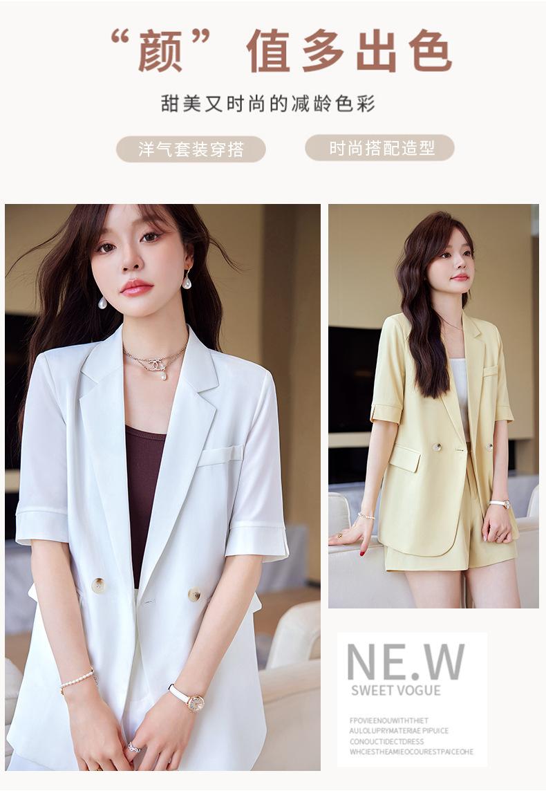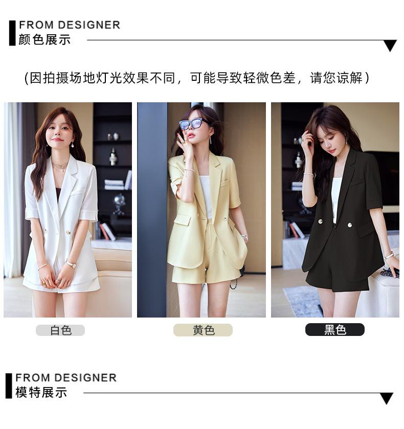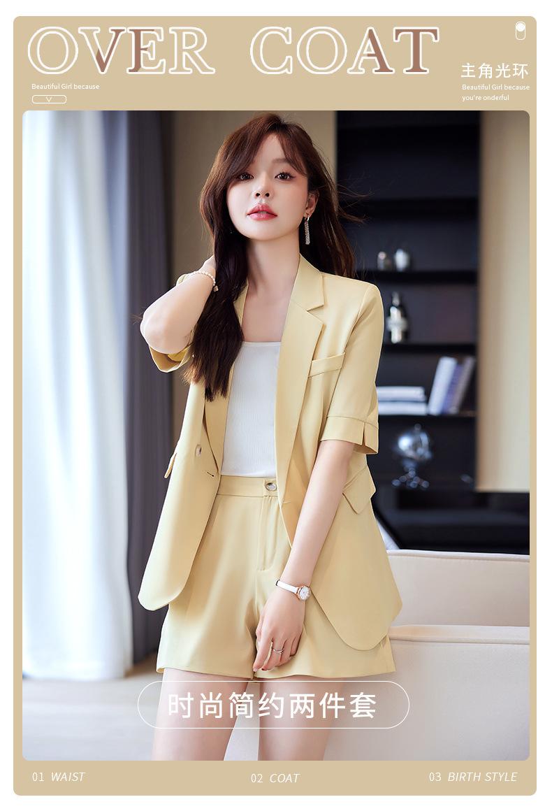 2024 Verão novo amarelo manga curta pequeno terno colarinho jaqueta shorts feminino profissional casual duas peças terno temperamento