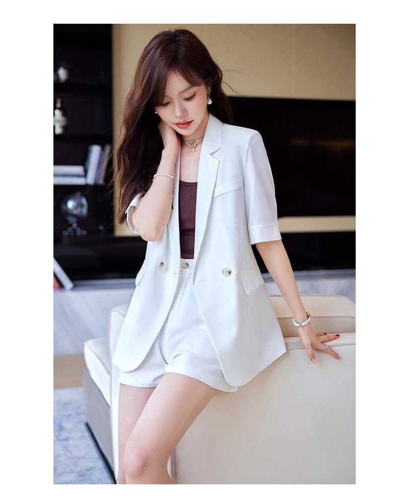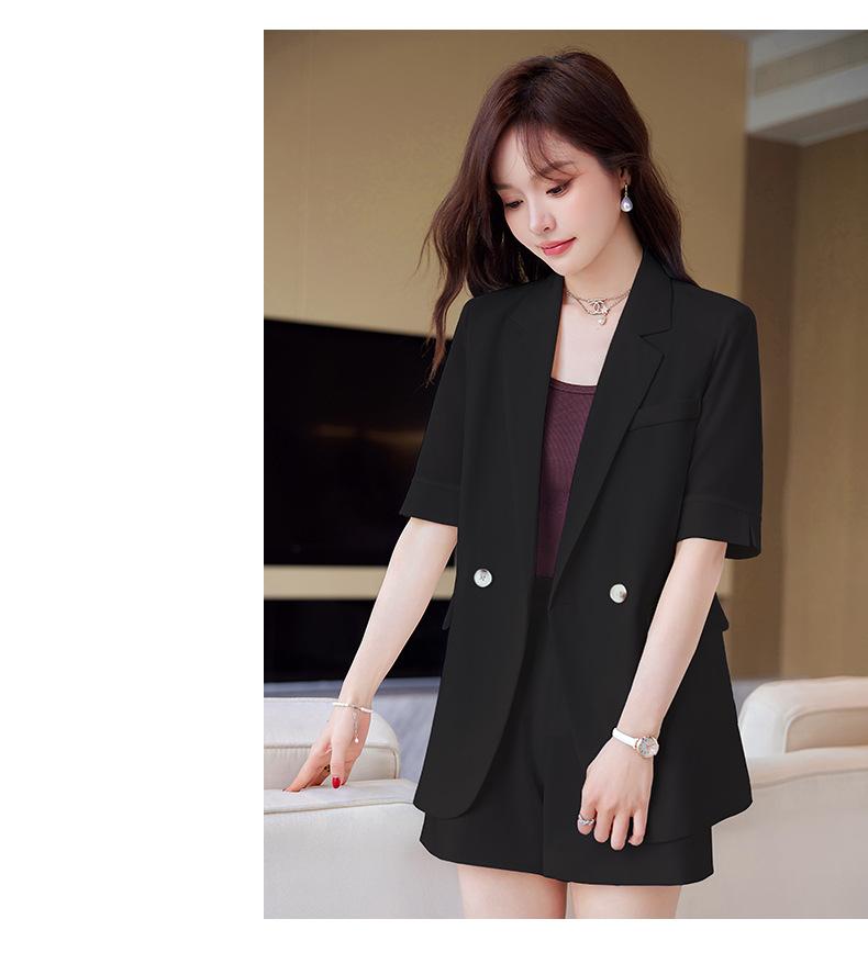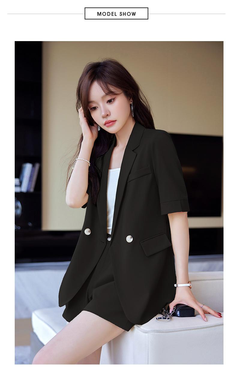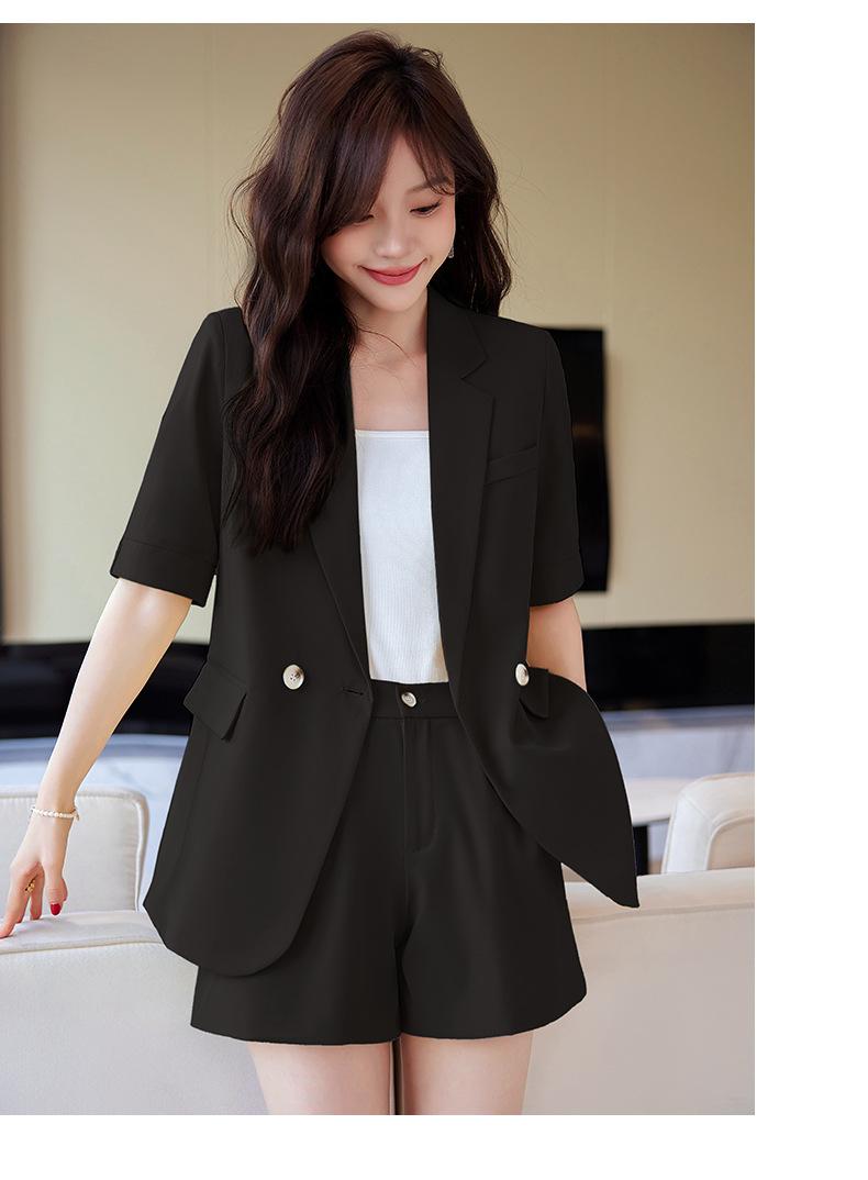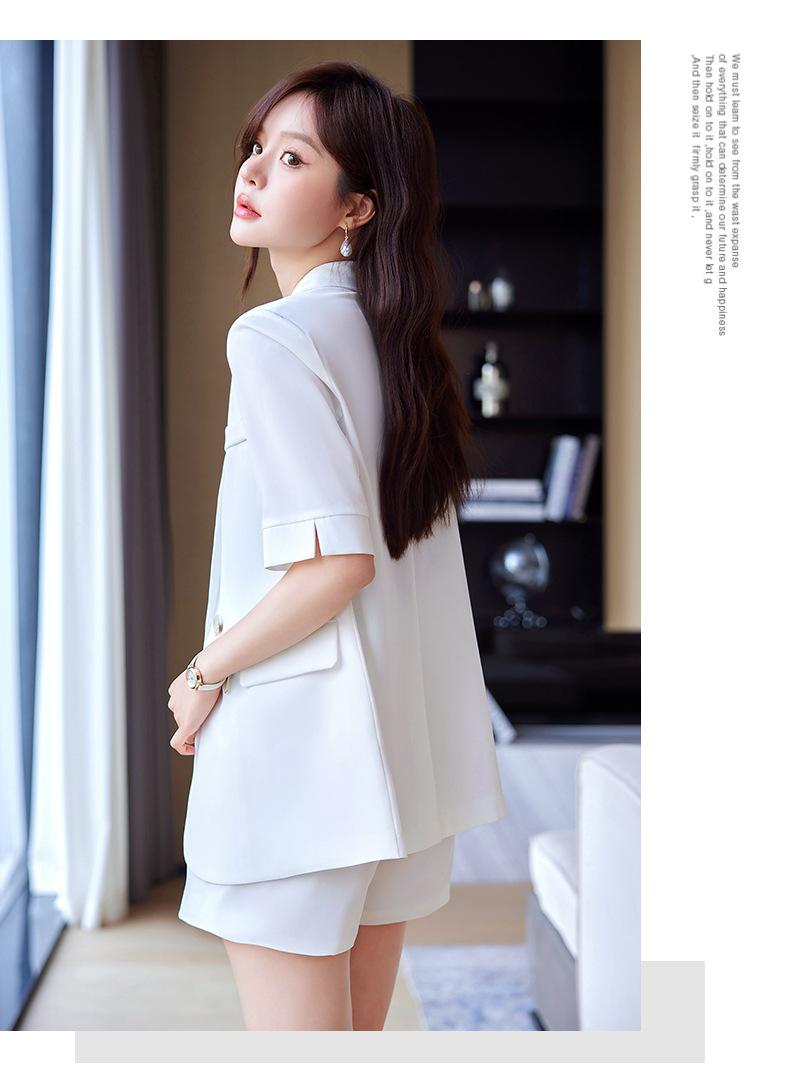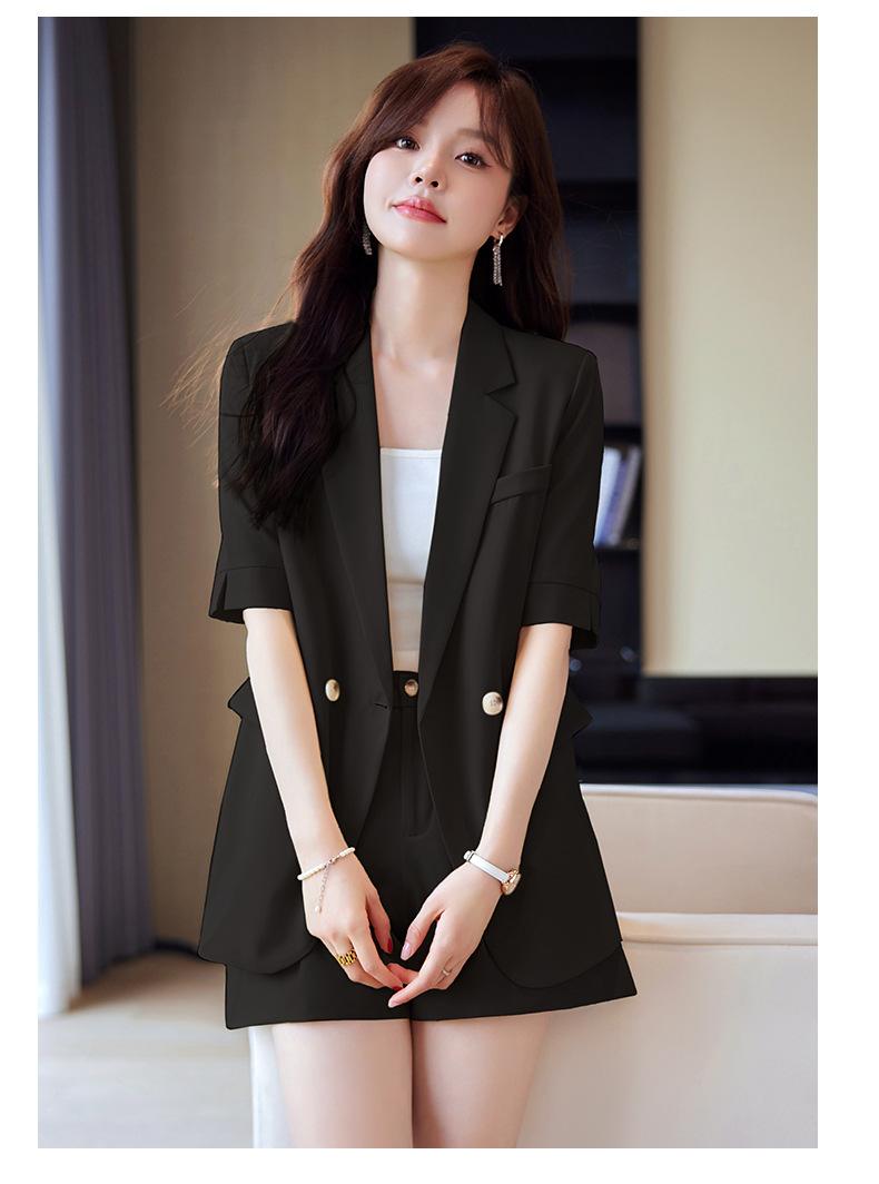 2024 Verão novo amarelo manga curta pequeno terno colarinho jaqueta shorts feminino profissional casual duas peças terno temperamento