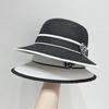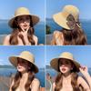 Chapéu de guarda-sol com laço de verão, chapéu de praia feminino, chapéu protetor solar da moda, chapéu de palha grande com cornija para áreas externas
