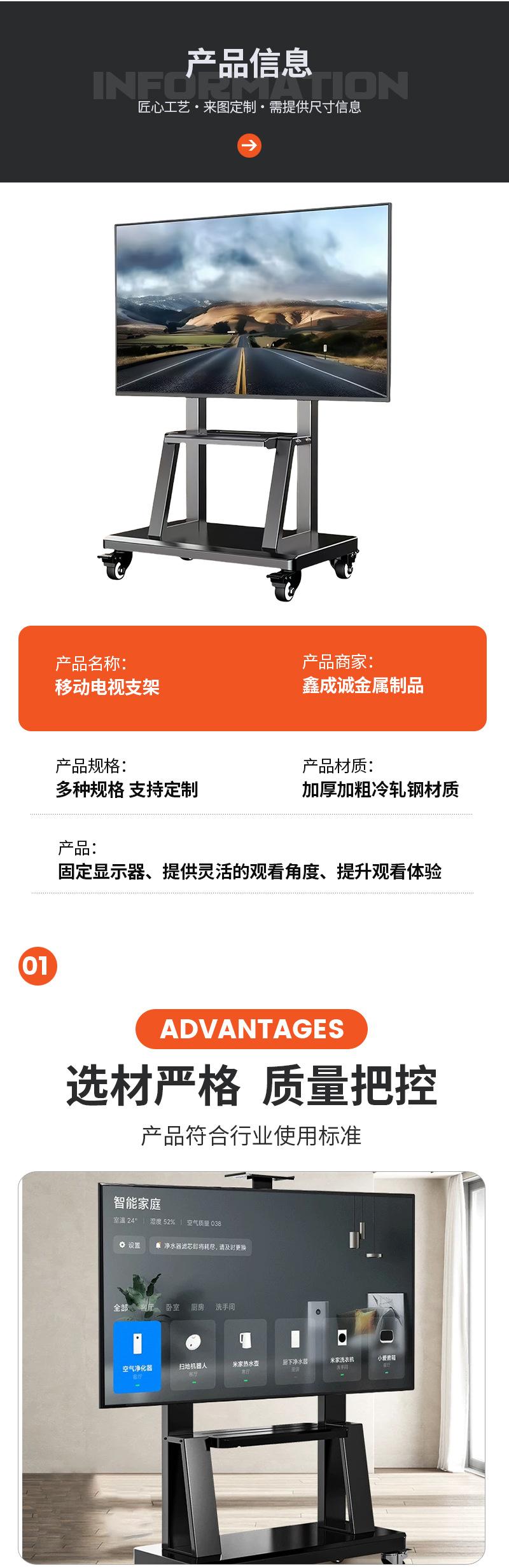 Suporte de TV, carrinho de chão móvel para TV, máquina tudo em um, adequado para fabricantes de prateleiras com rodas universais verticais