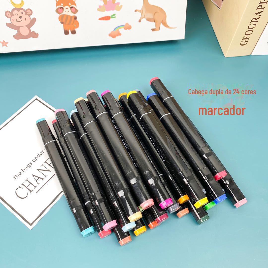 Conjunto de Canetas Marcadoras de Ponta Dupla Atacado 2436304048 Cores Desenho Infantil Toque Animação Conjunto Atacado