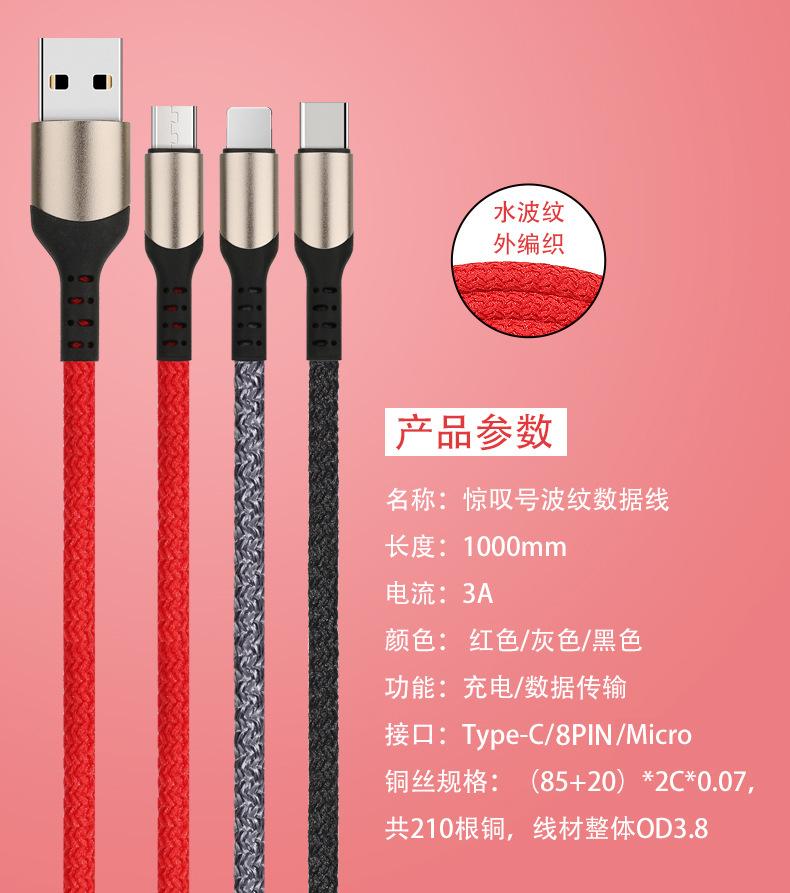 [Destaques do Produto] Design moderno de modelo privado quebra o estilo tradicional, carcaça de liga anti-zinco, núcleo interno de TPE 210 cobre estanhado, corrente acima de 3A, carregamento rápido, resistência ao estiramento, anti-enrolamento, processo de moldagem por injeção interna, nenhum ambiente climático fará com que a carcaça se solte, sem nós, resistente ao desgaste e à sujeira! Comprimentos disponíveis são 1 metro, 2 metros e 3 metros.