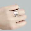 Anel Geométrico Retrô Personalizado Estilo Coreano para Mulheres Simples Prata Velha Tailandesa Multicamadas Brilhante Aberto Fabricante Atacado