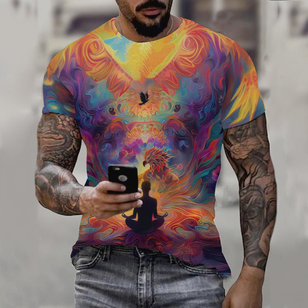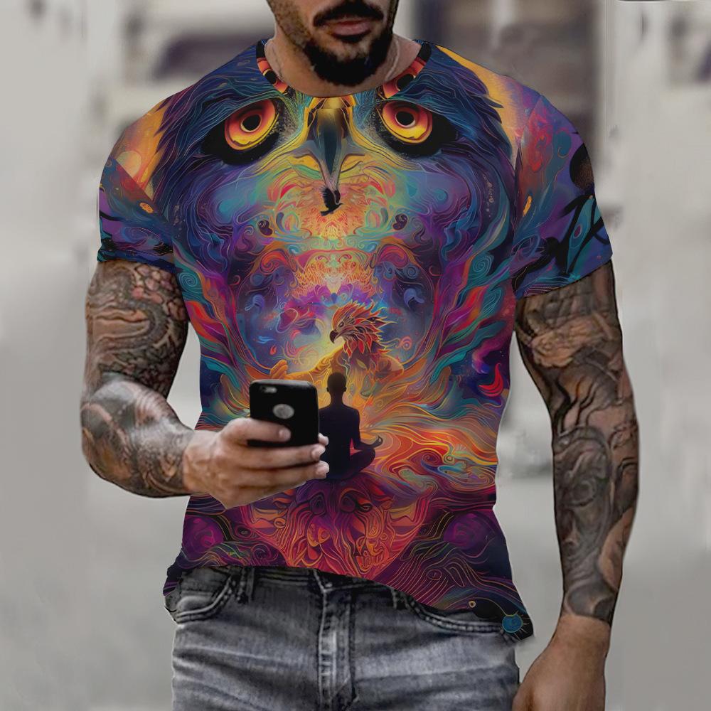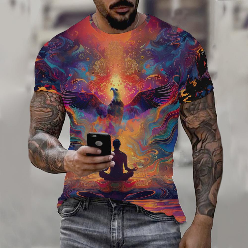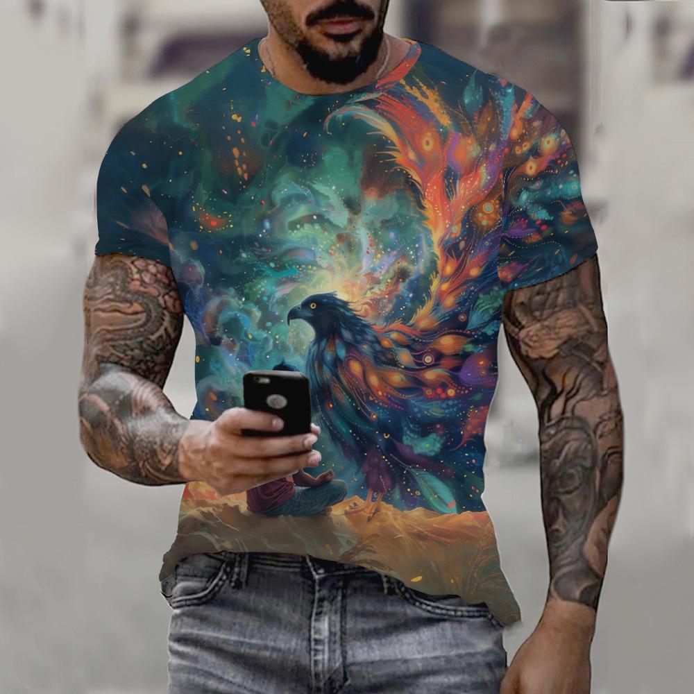 2025 Transfronteiriço Amazon Nova Camiseta Masculina Estampada em 3D Padrão Cabeça de Águia Colorida Mais Vendida Moda de Rua Manga Curta Roupa Masculina