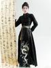 Compre Novo Terno de Estilo Nacional Dinastia Ming de Estilo Chinês para Mulheres 2025 Outono Novo Top Bordado com Cintura Elástica Saia Rosto de Cavalo e Cinto no atacado no Joom.pro