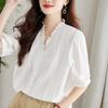 Camiseta solta de emagrecimento com decote em V e manga curta, feminina, comércio exterior transfronteiriço, verão de 2025, novo design de estilo coreano, top puro desejo