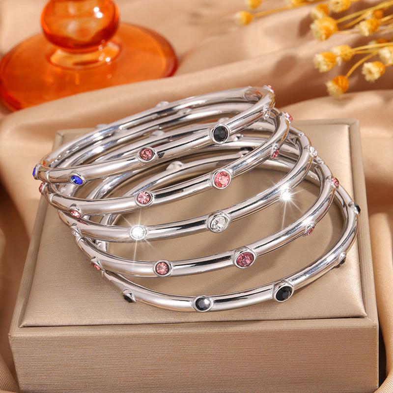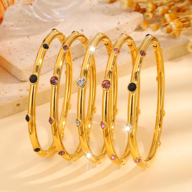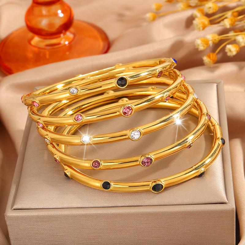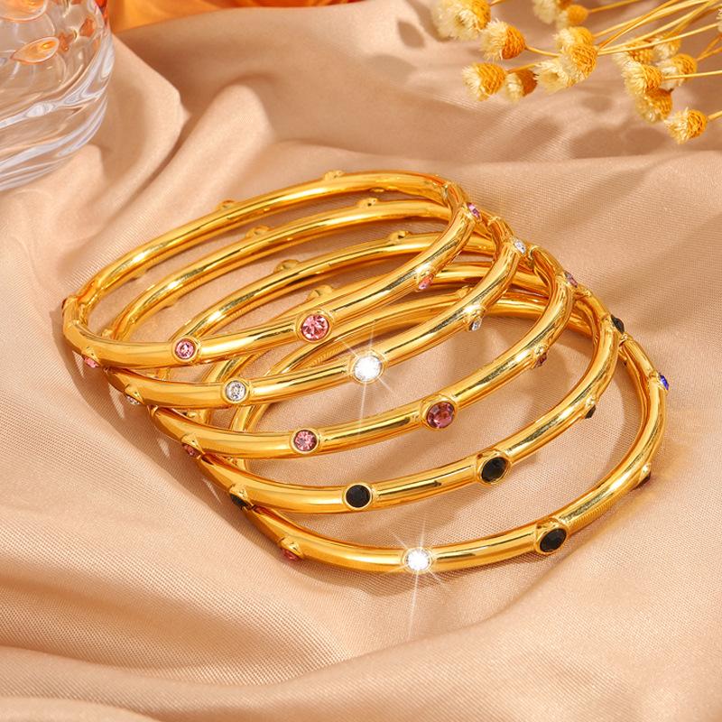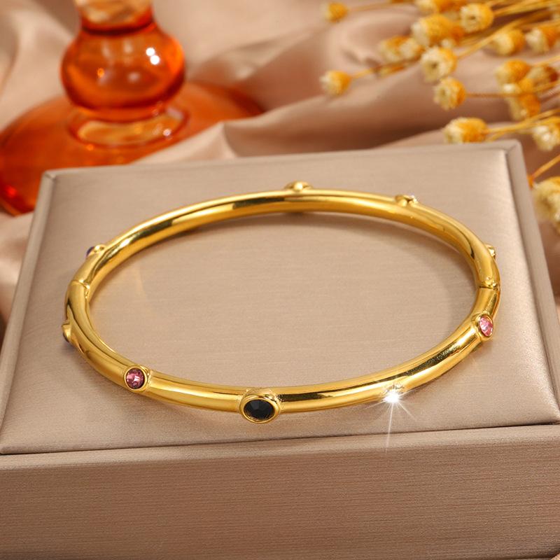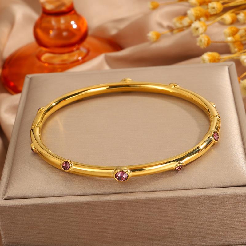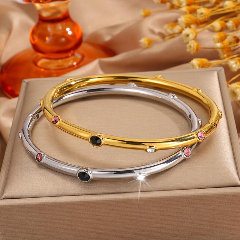 Gold color diamond stainless steel bracelet, Gold black diamond stainless steel bracelet, Gold purple diamond ...
