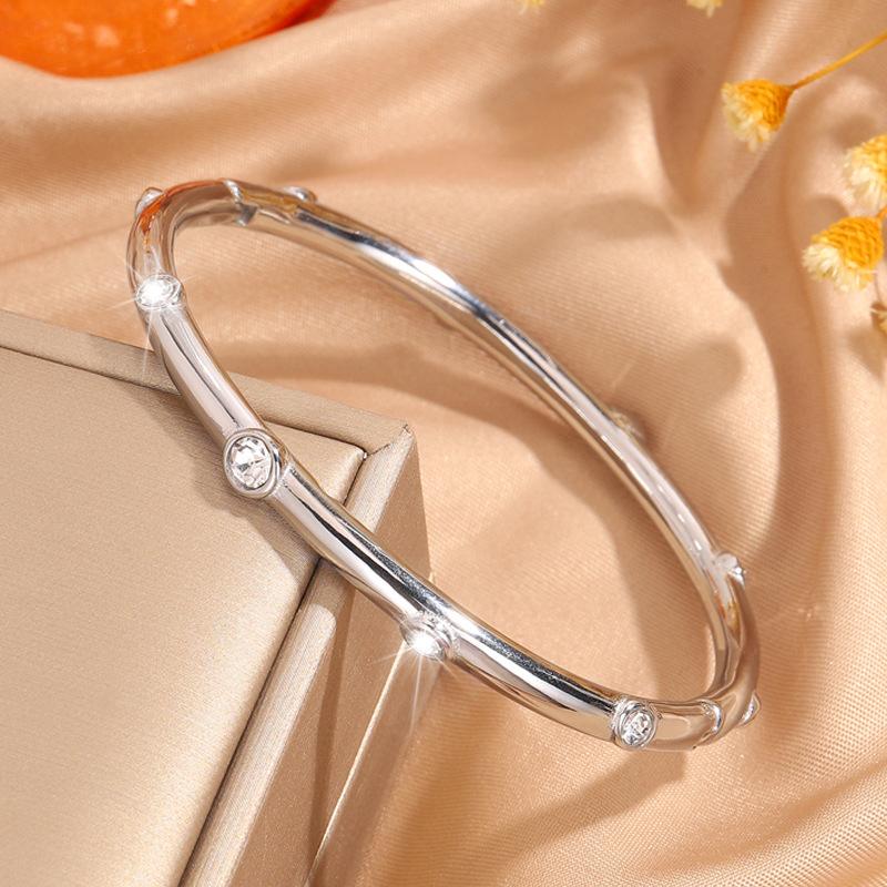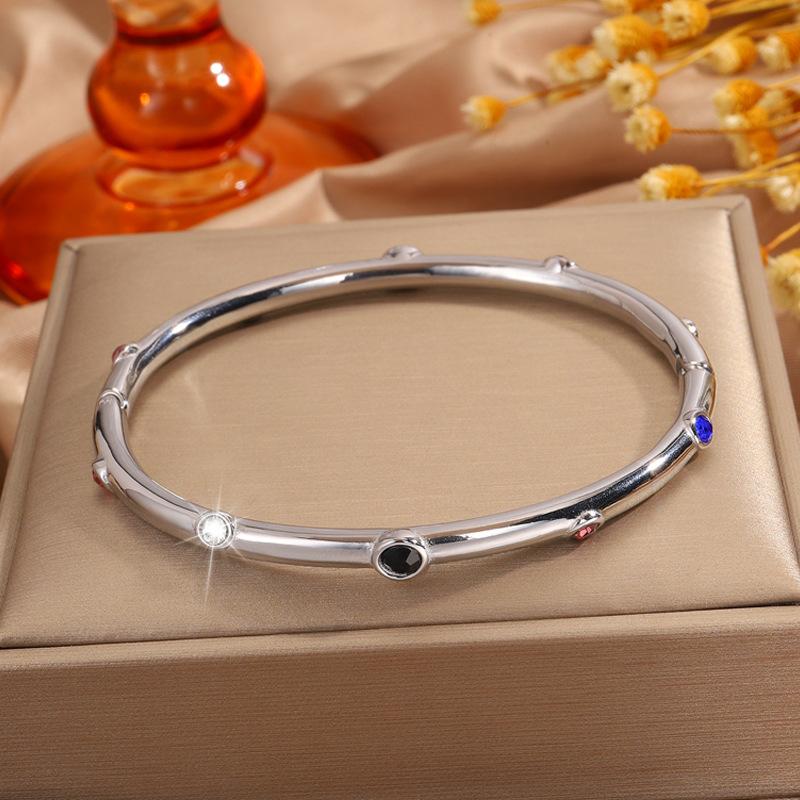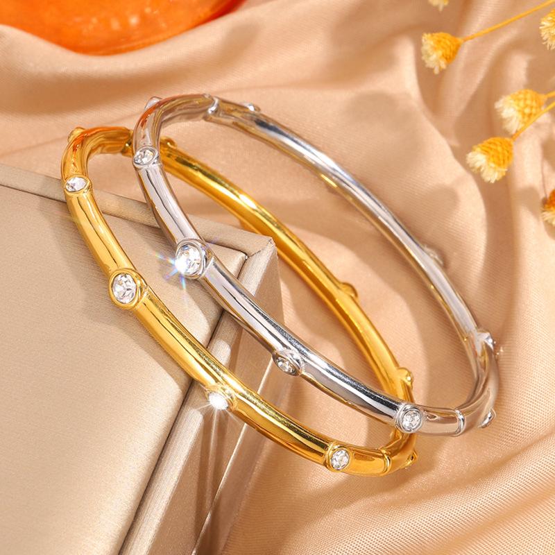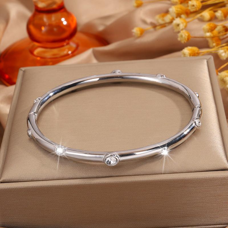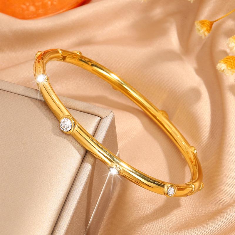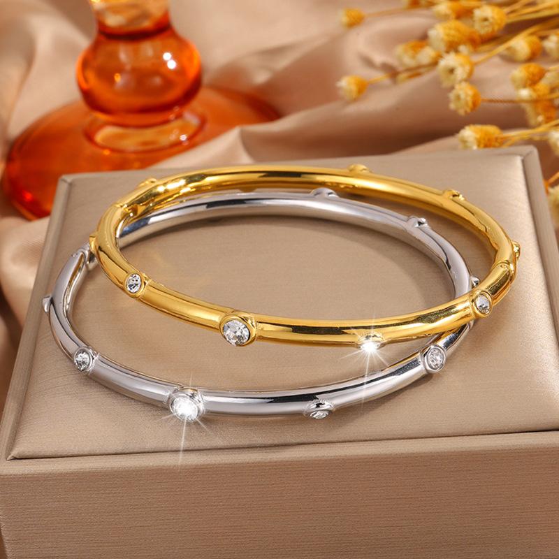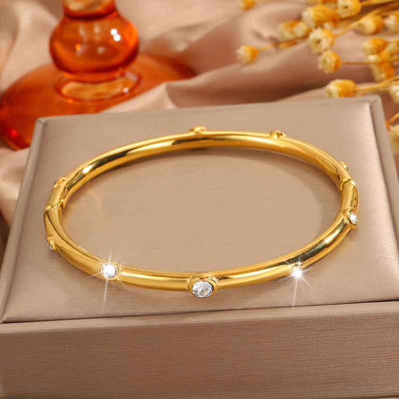 Pulseira feminina de aço inoxidável com dez diamantes, banho de ouro 18k de alto padrão, pulseira de moda de luxo, joia Coringa de personalidade