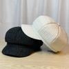 Chapéu Octogonal de Sarja com Etiqueta Redonda da Moda 2025 para Mulher Primavera e Verão Versátil Pequeno Boné Cor Sólida Simples Chapéu de Jornaleiro