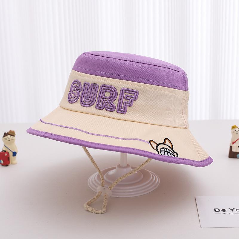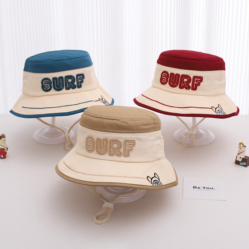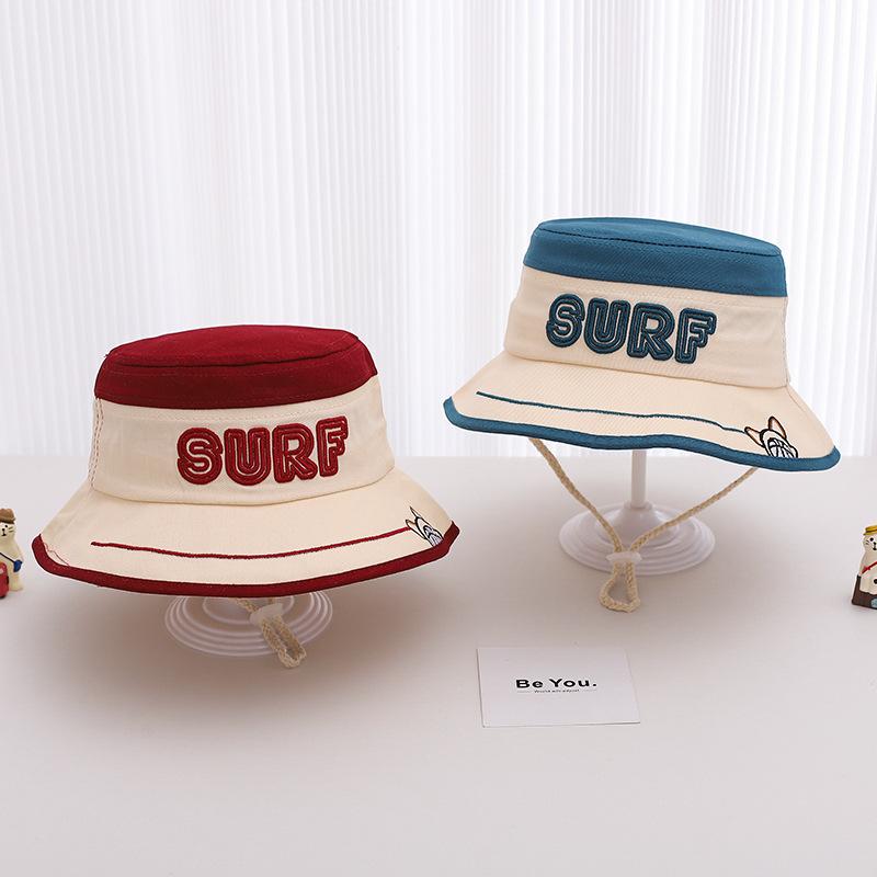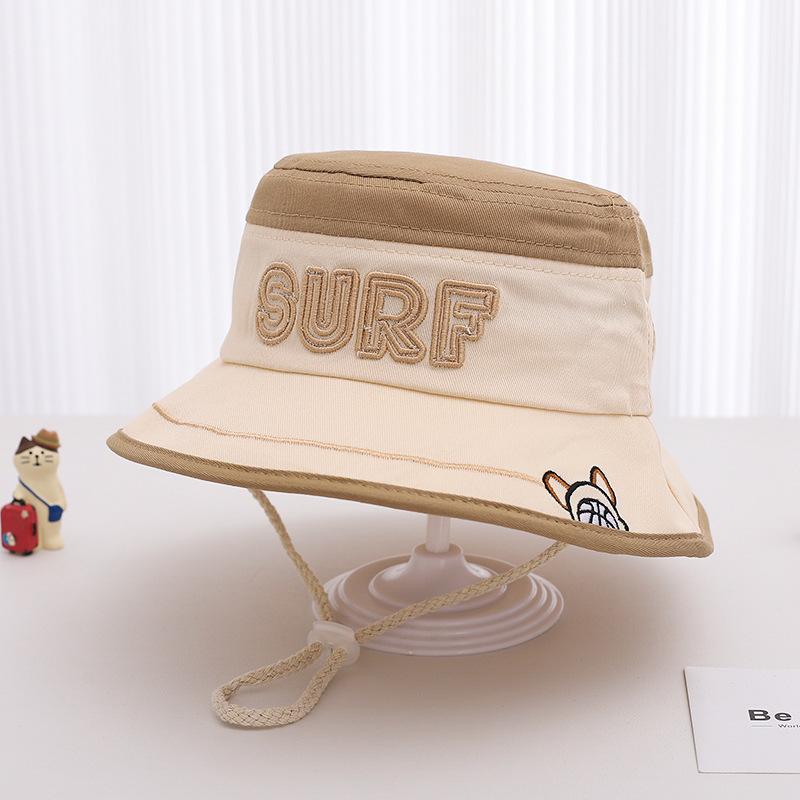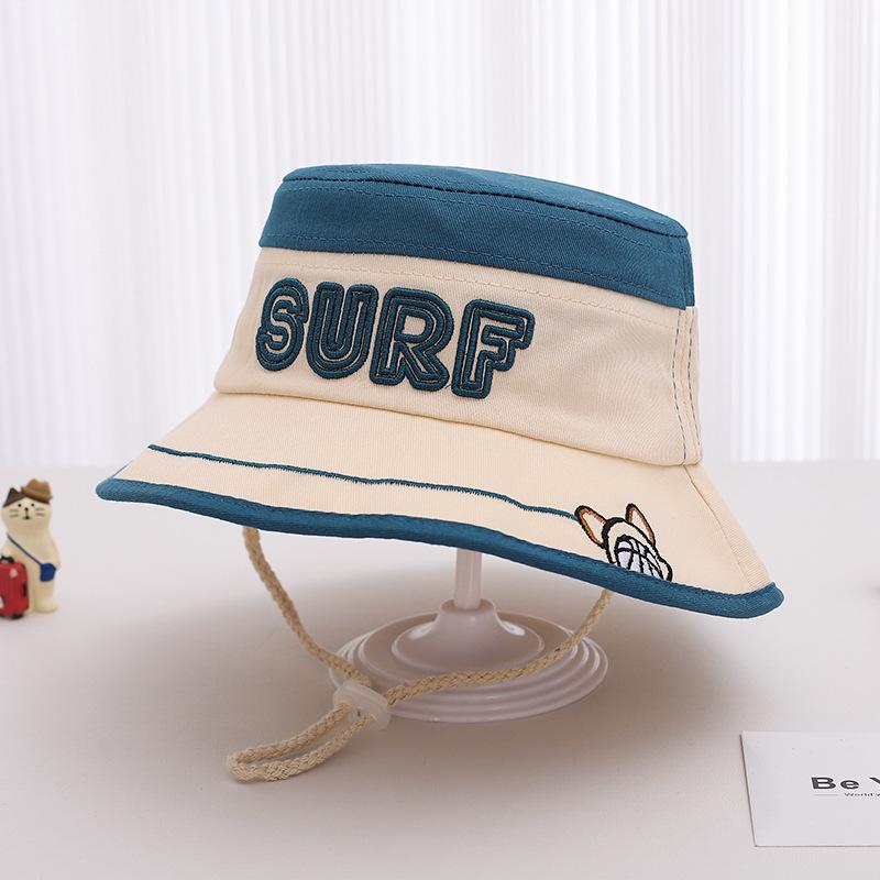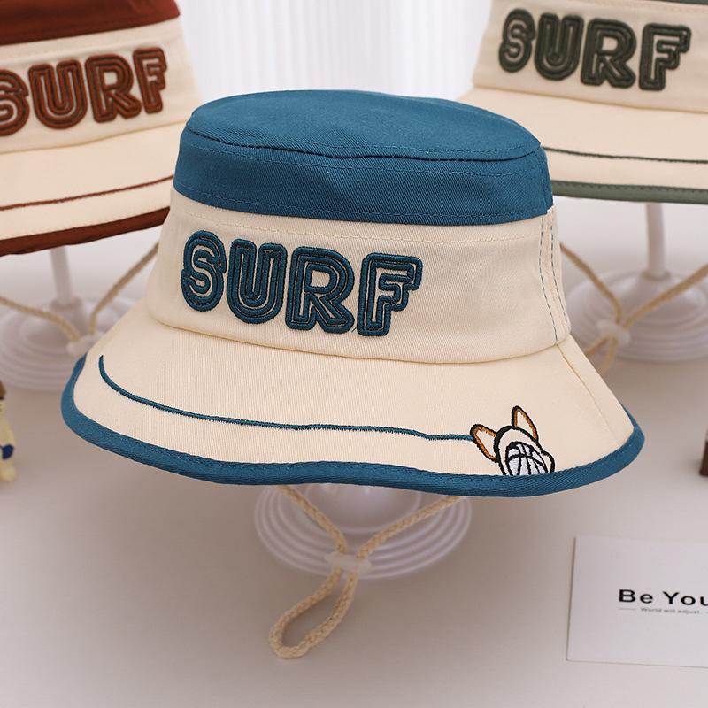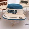 Chapéu infantil japonês e coreano, chapéu de pescador, letra SURF, fofo, meninos e meninas de 2 a 5 anos, chapéu de bacia para bebês, chapéu de sol de verão