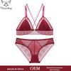 Vendas Diretas de Fábrica Push-Up para Seios Pequenos Bojo Médio Conjunto de Sutiã Íntimo Sexy de Renda Estilo Europeu e Americano para Exportação
