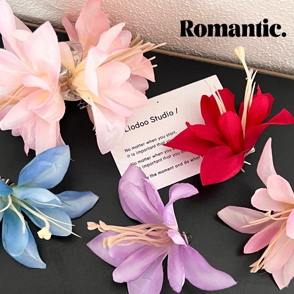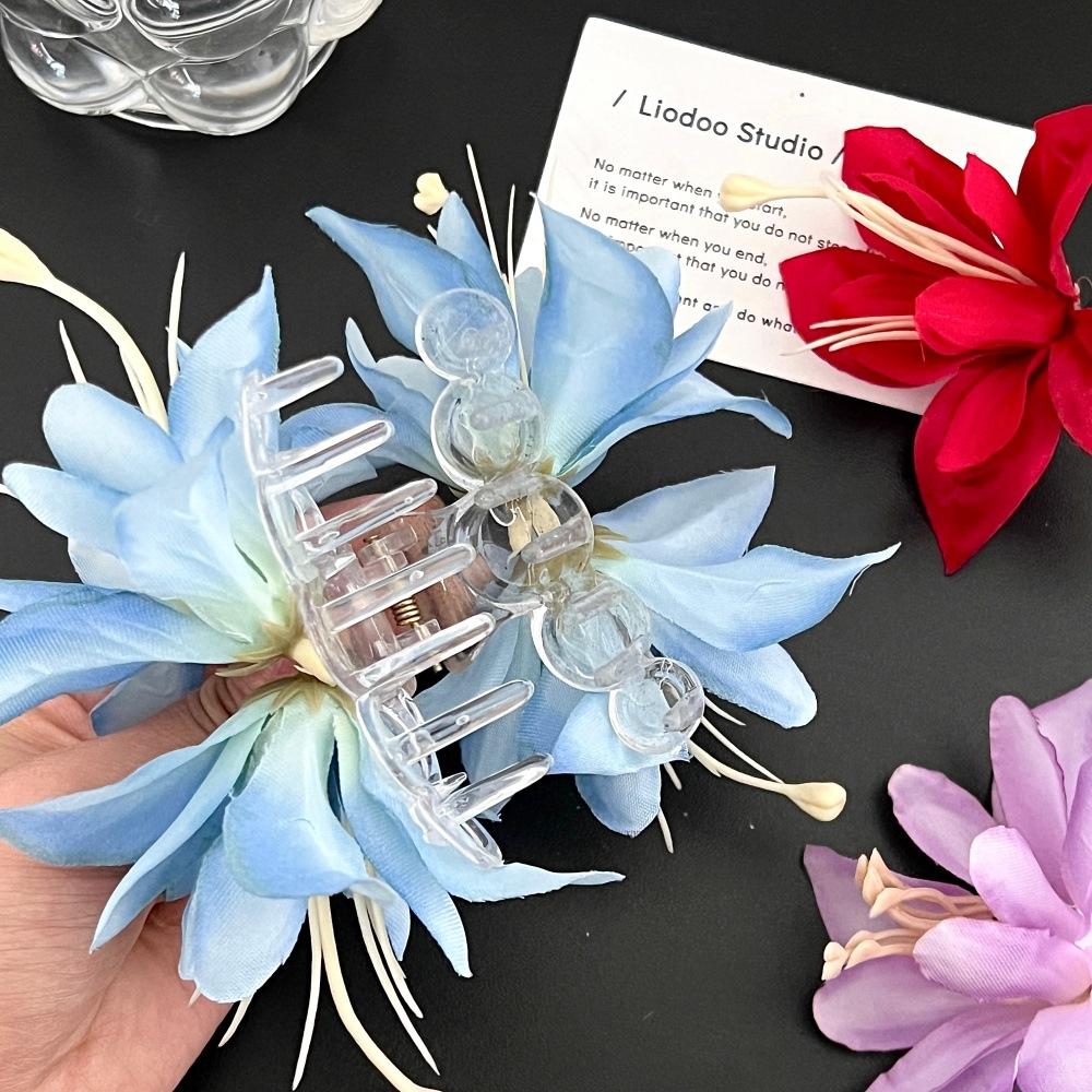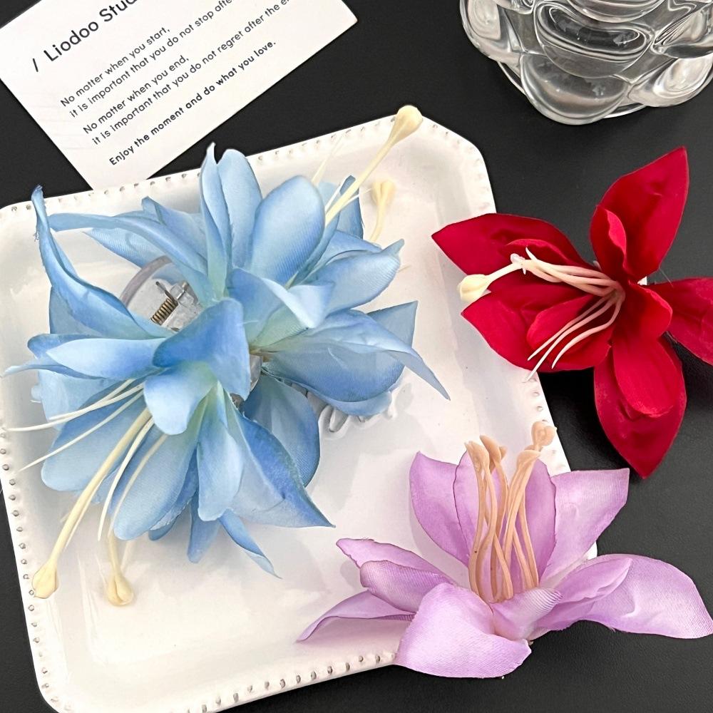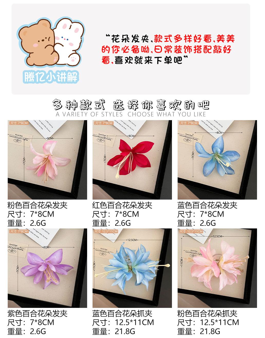 Grampo de cabelo de flor de lírio de super fada de simulação, acessórios para cabelo, disco de cabeça avançada, grampo de cabelo, grampo de tubarão, grampo de franja Atmosphere Sense