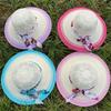 Chapéu de Palha Doce Elegante de Verão para Mulheres Estilo Coreano Pequeno Floral Fita Chapéu de Sol Laço Aba Larga Chapéu de Proteção Solar