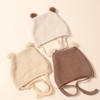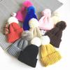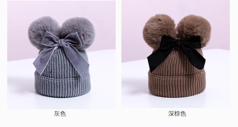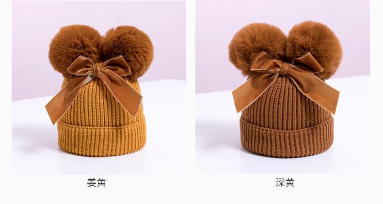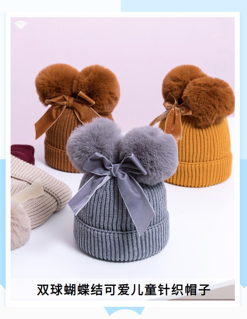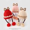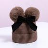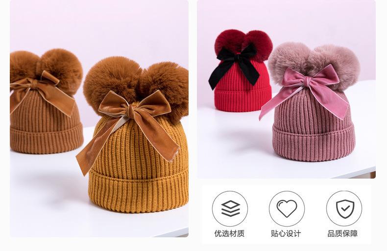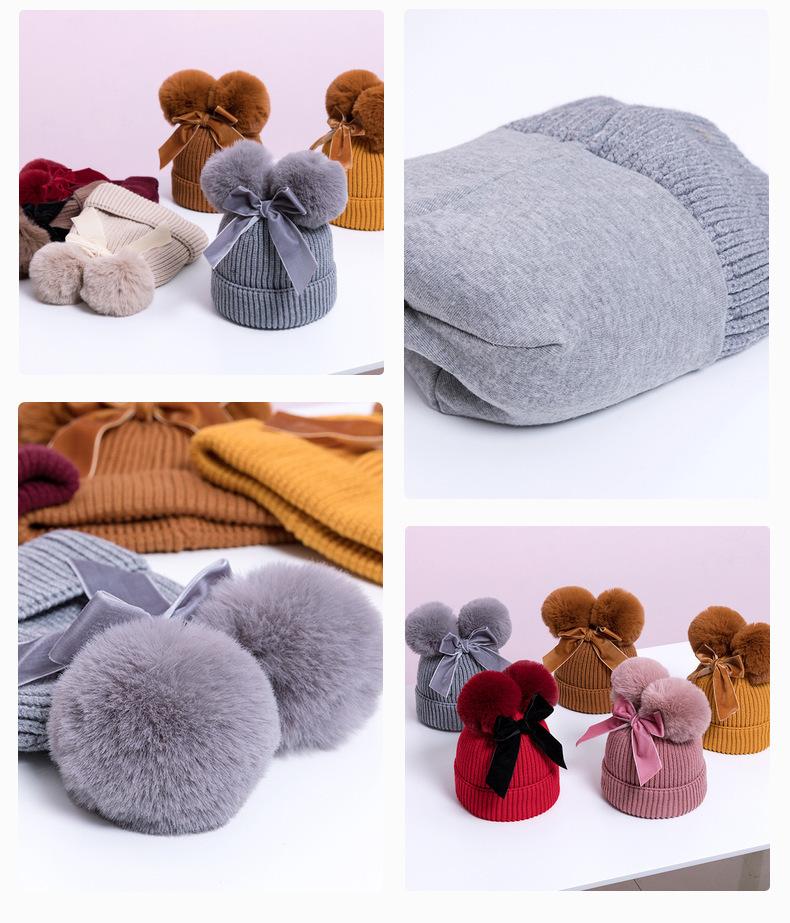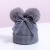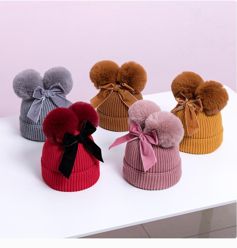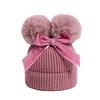 Touca de Tricô Infantil Outono e Inverno Nova Espessura Quente Touca Infantil com Pompons e Laço Bonita Touca de Tricô Infantil