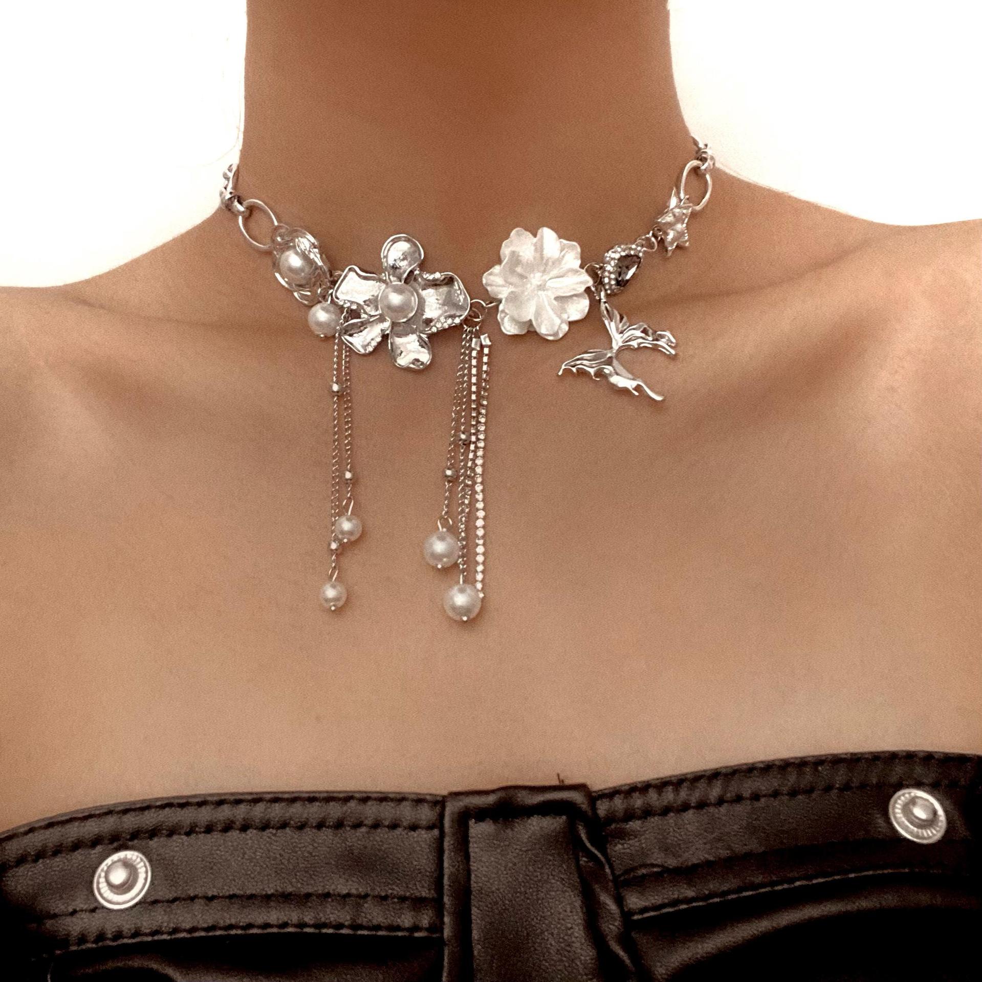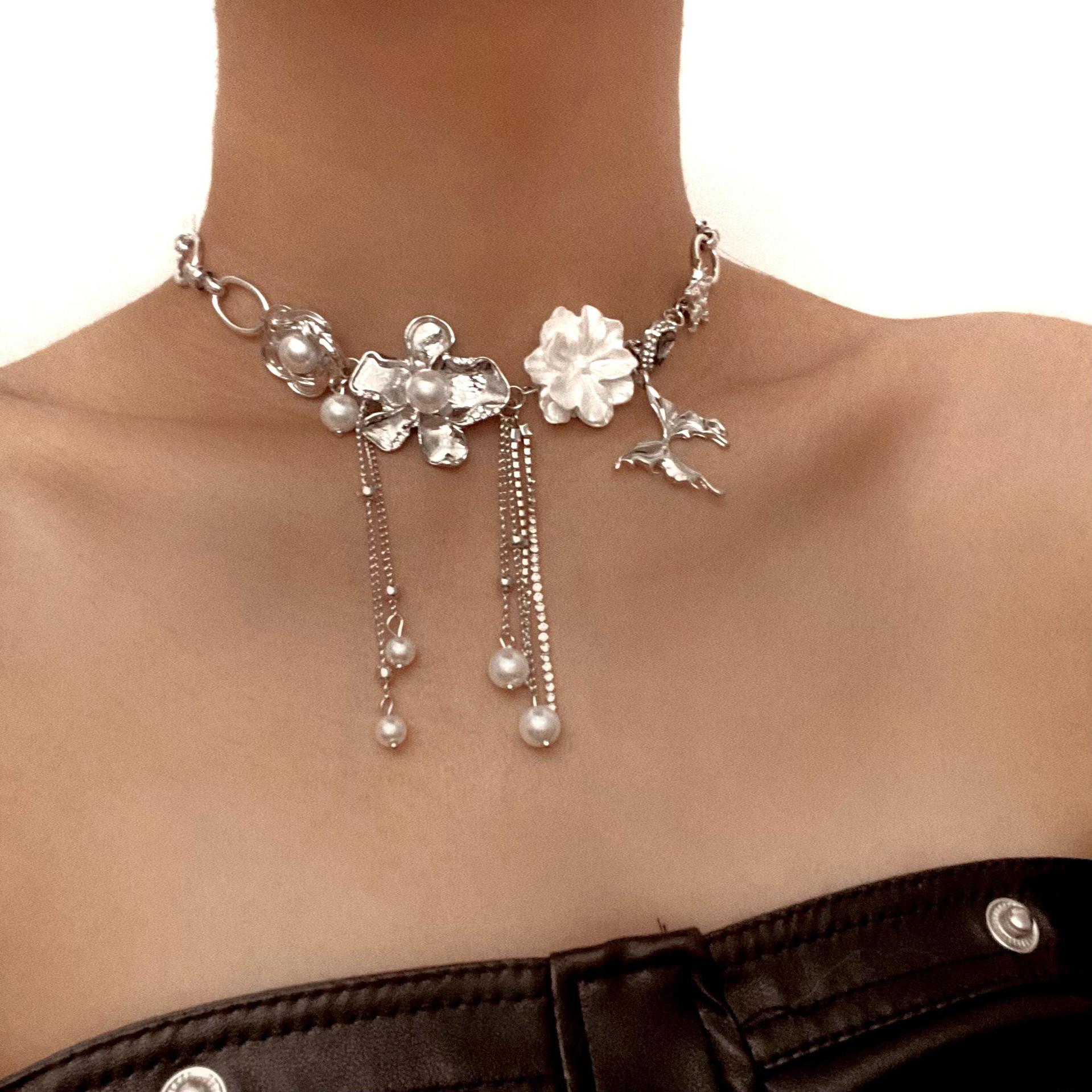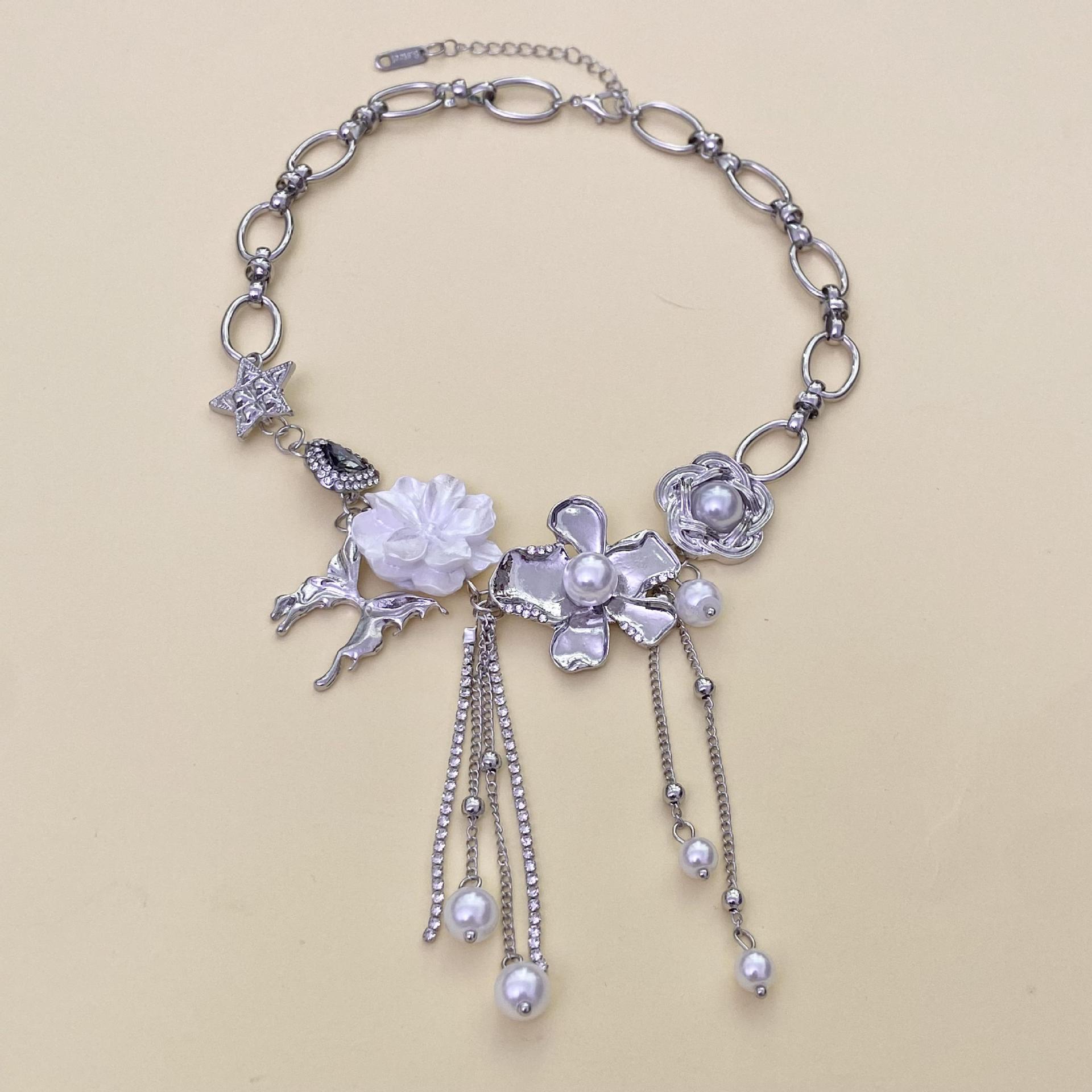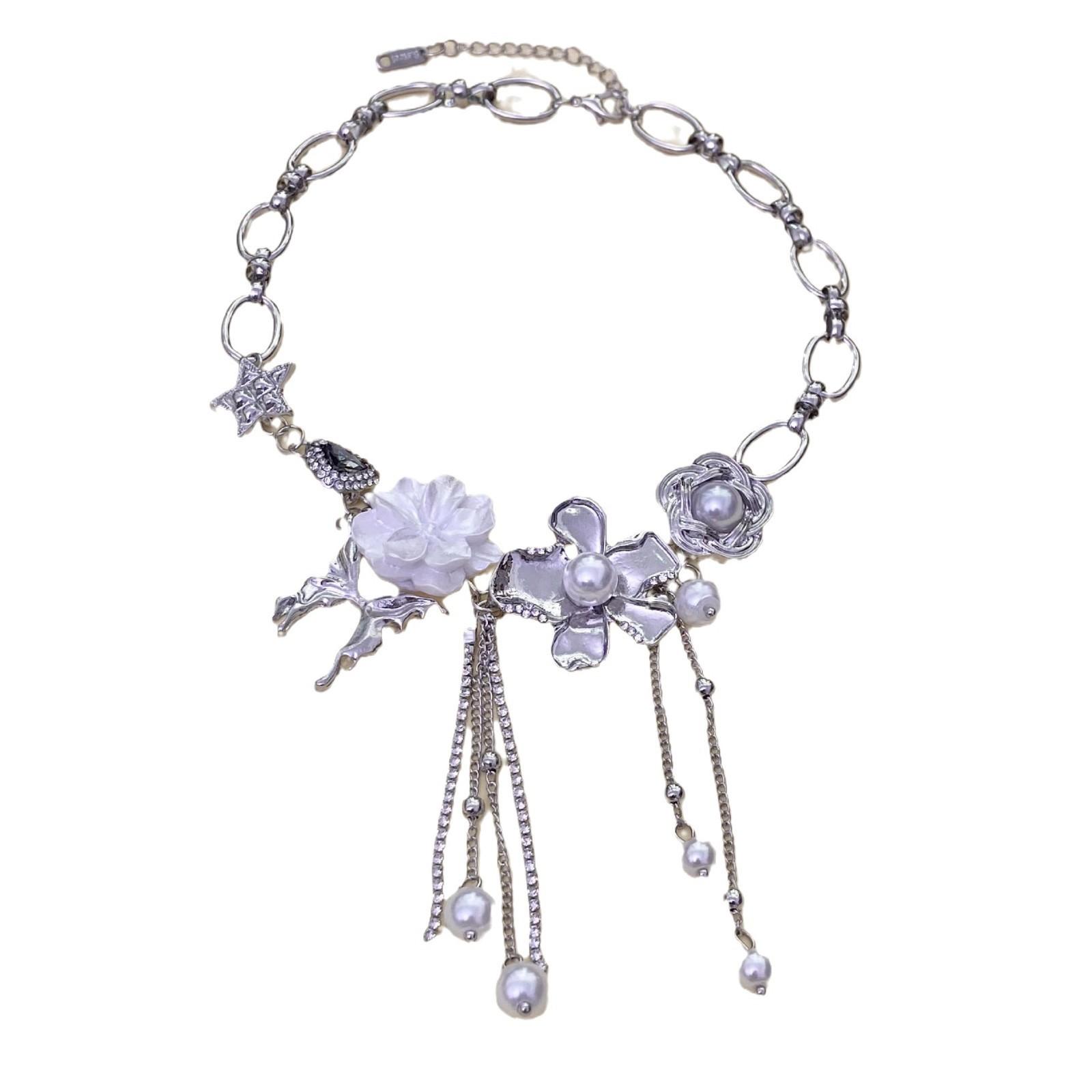 Moda de joias transfronteiriças europeias e americanas, estrelas, pérolas, flores, borboleta, borla, colar, design, nicho, luz, luxo, corrente de clavícula