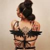 Terno feminino de couro punk europeu e americano com alça de asas de anjo, top de couro com amarração, alça de ombro