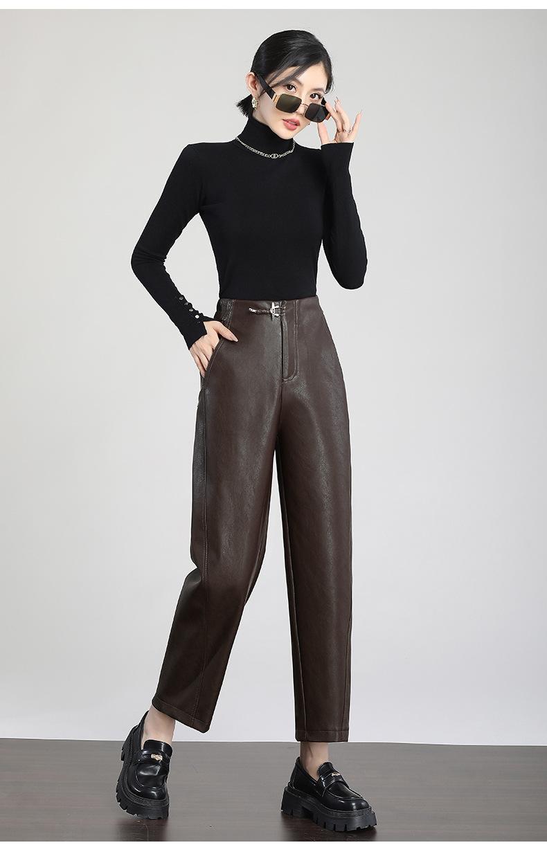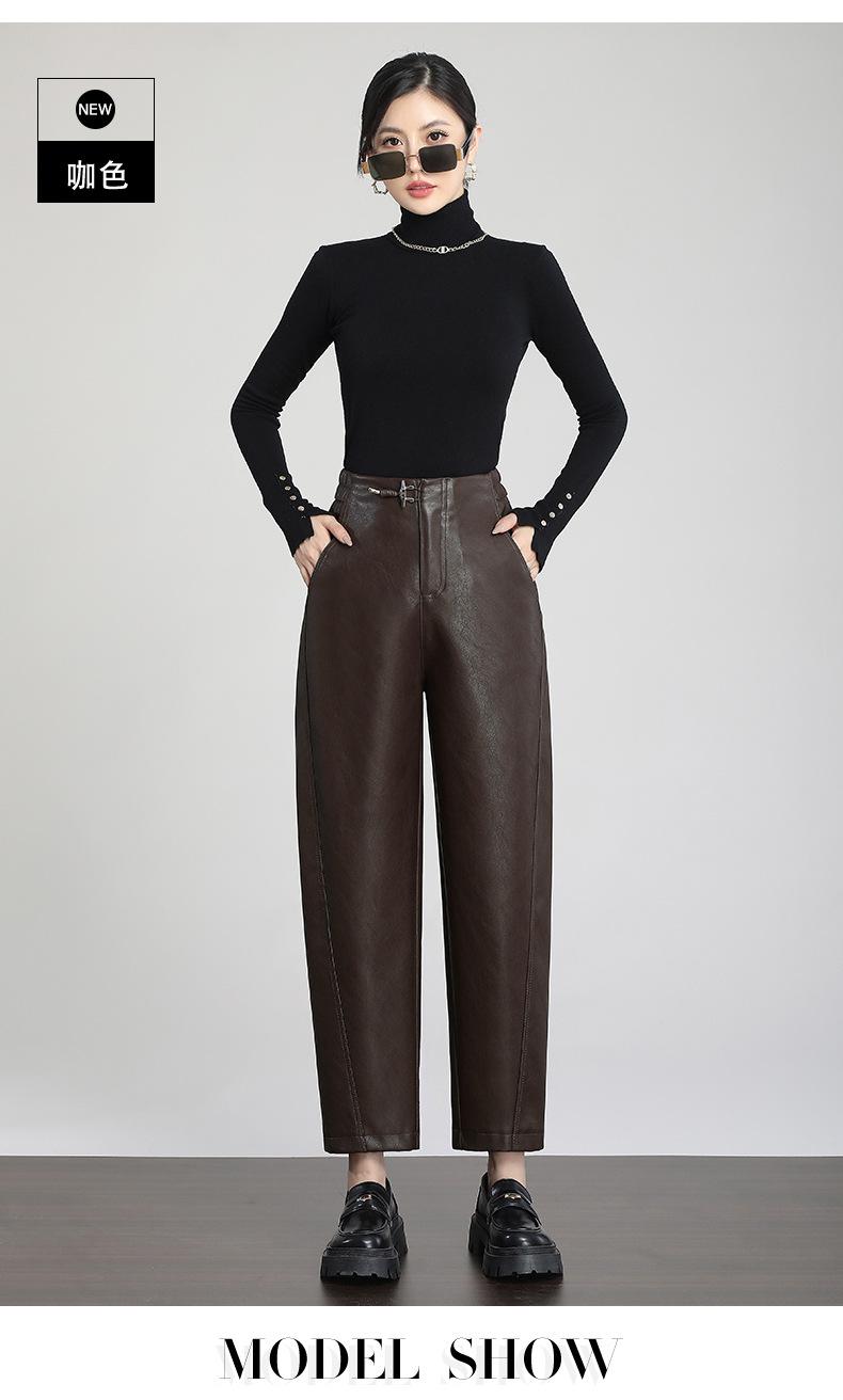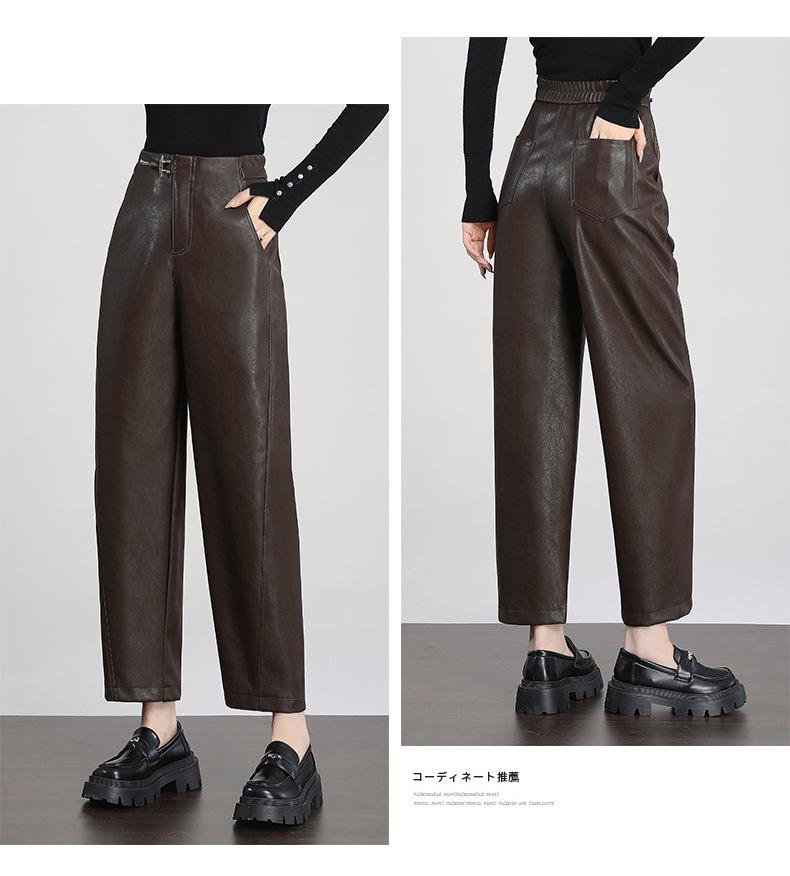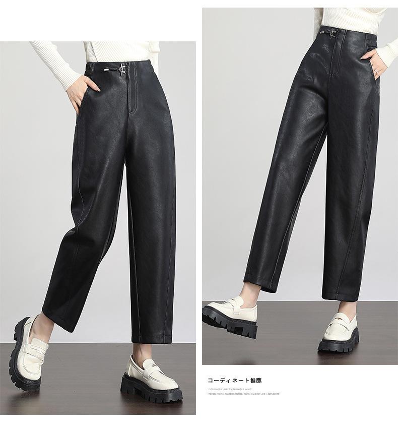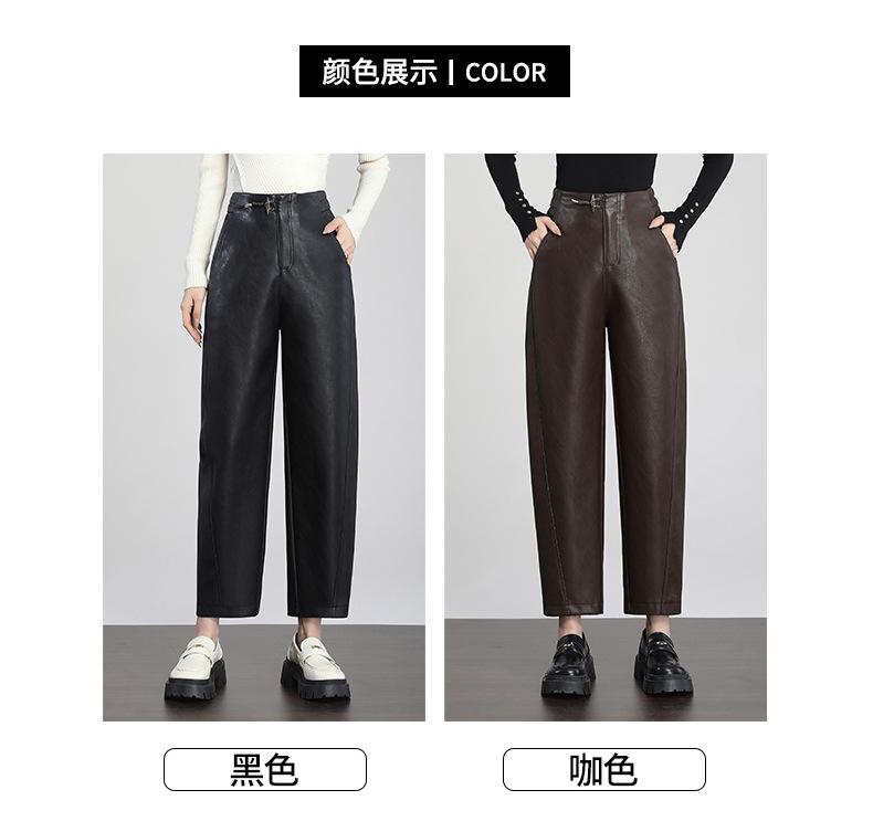 2025 Novo Outono e Inverno Calças de Couro Pelúcia Haining Femininas Cintura Alta Slim Calças Banana Couro Pu Artificial Tamanho Grande Calças Harem