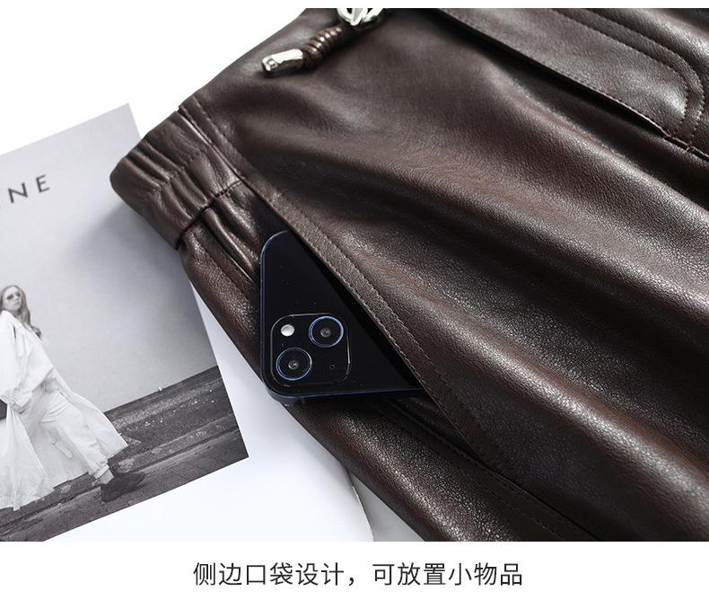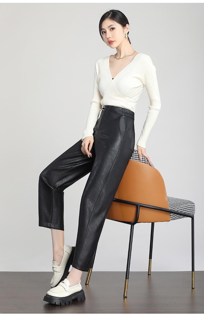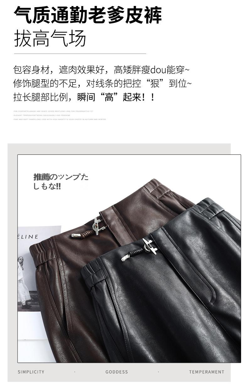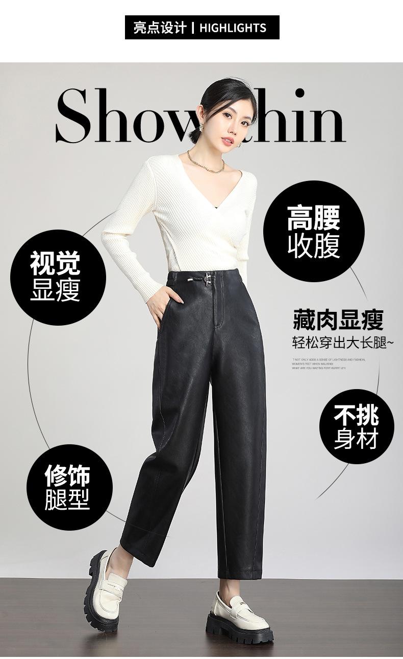 2025 Novo Outono e Inverno Calças de Couro Pelúcia Haining Femininas Cintura Alta Slim Calças Banana Couro Pu Artificial Tamanho Grande Calças Harem