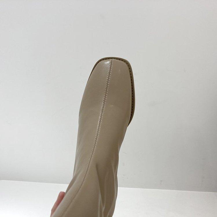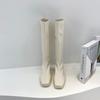 Botas longas com zíper traseiro forrado de lã 2023 novas botas Knight de bico quadrado botas altas brancas all-match Botas femininas finas